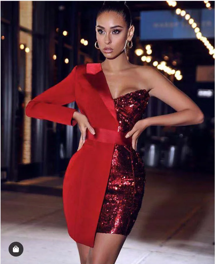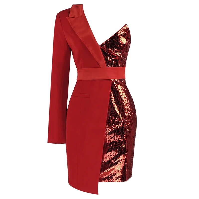Блейзер на одно плечо с длинным рукавом и блестками, платье-смокинг из крепа с блестками, модное платье для девушек, вечерняя одежда
