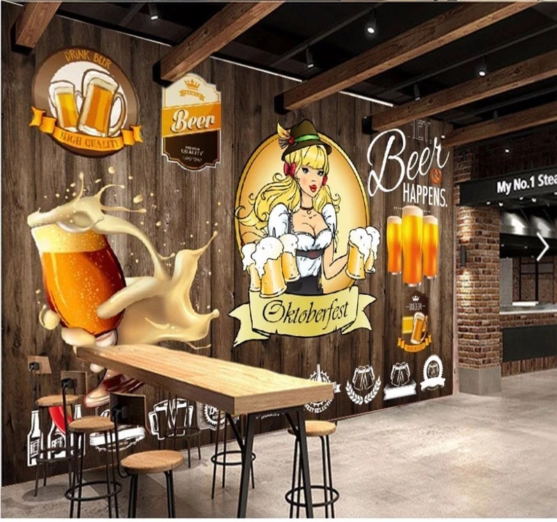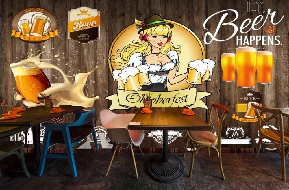 Самоклеящиеся обои в стиле ретро, ностальгические, водостойкие, с изображением пивной девушки, для столовой