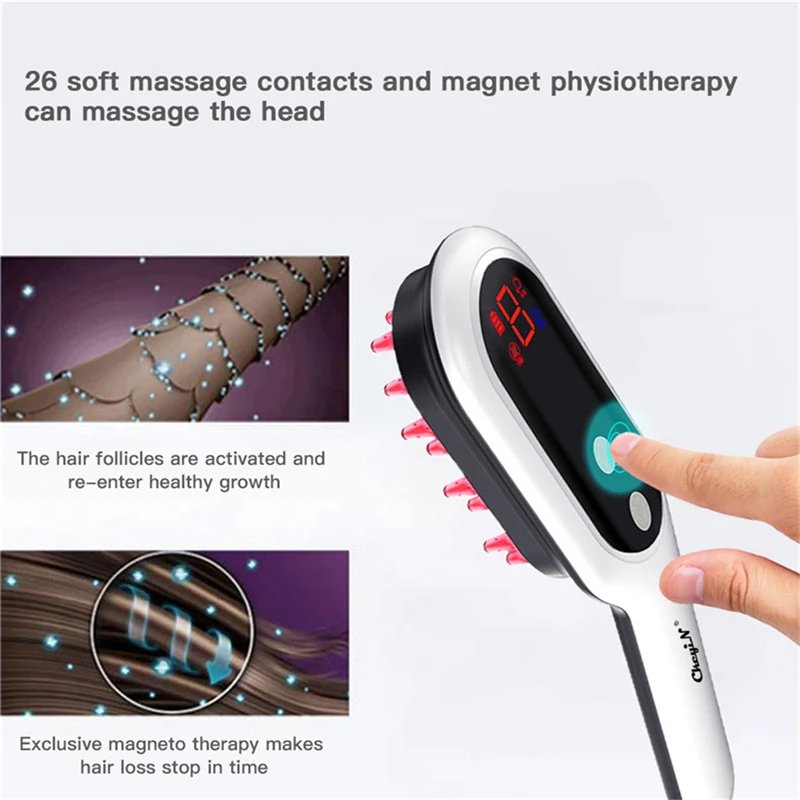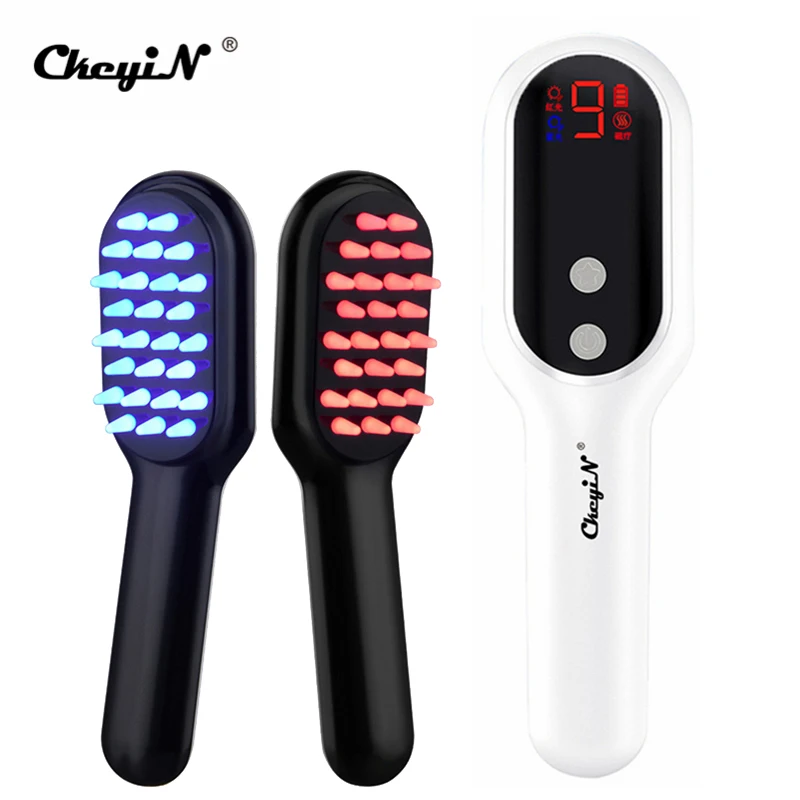 CkeyiN электрическая вибрационная Массажная расческа для ухода за ростом волос лечение против выпадения волос фото Магнитная терапия массажер для кожи головы USB щетка
