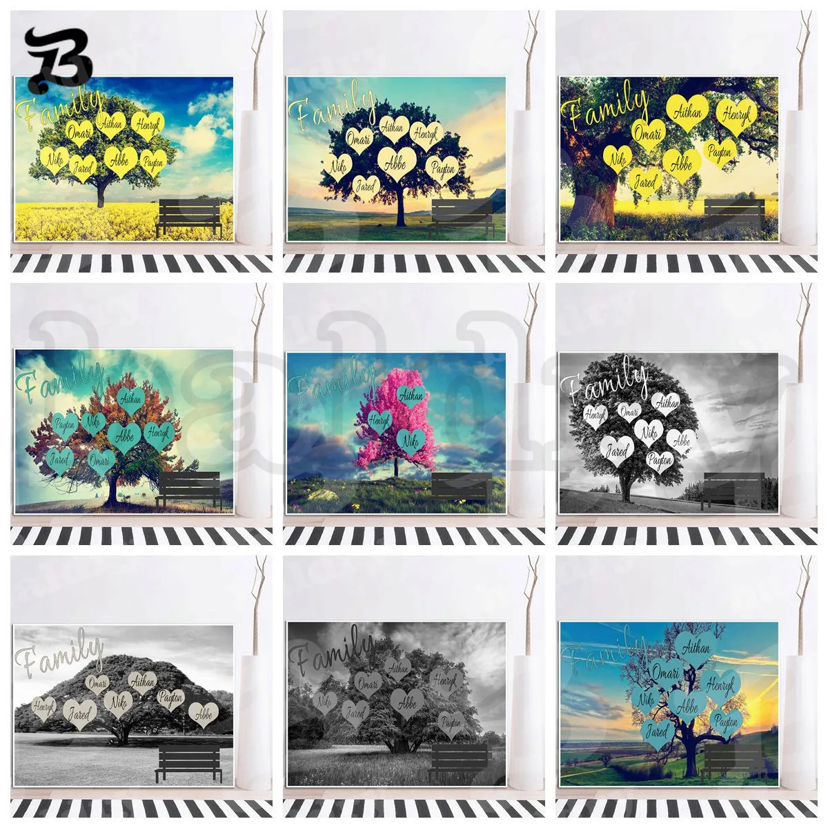 Картина на холсте, на заказ, имя, настенное искусство, красивые большие деревья, пейзаж, креативный подарок...
