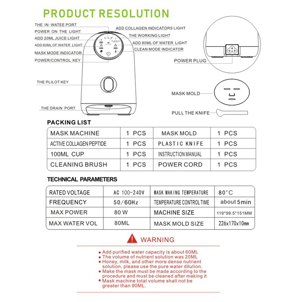 * 2. Поставляется с пищевой пресс-формой для маски ABS, которая подходит для формы лица человека, идеально подходит для лица.