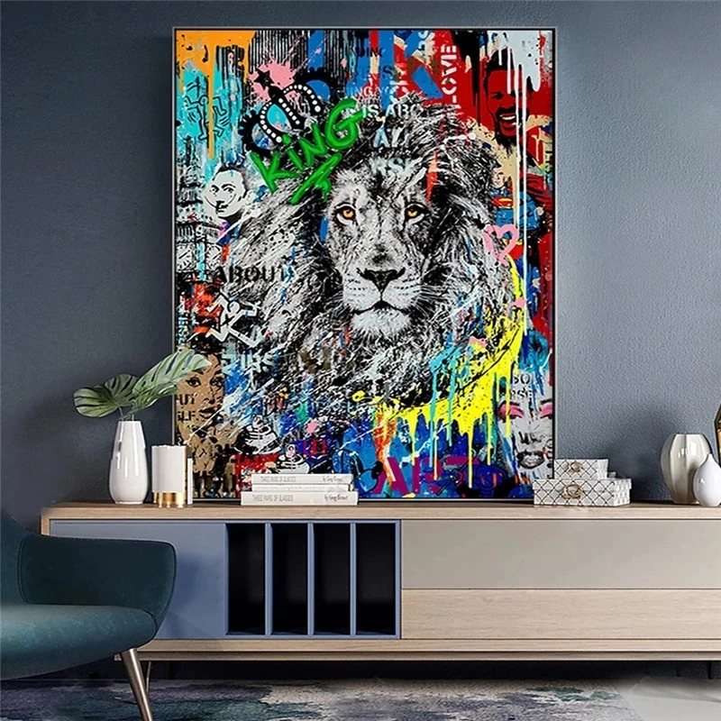 Абстрактный Лев, холст, искусство, граффити, животные, искусство, Д...