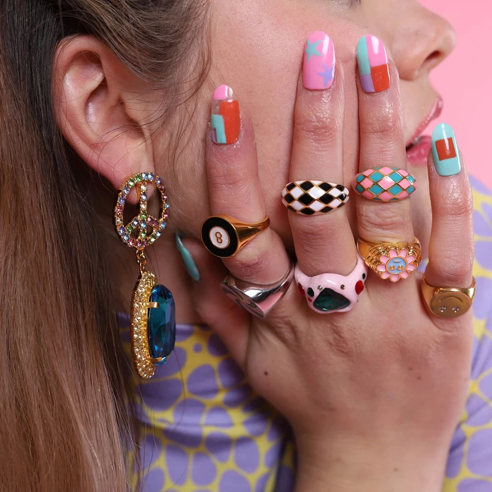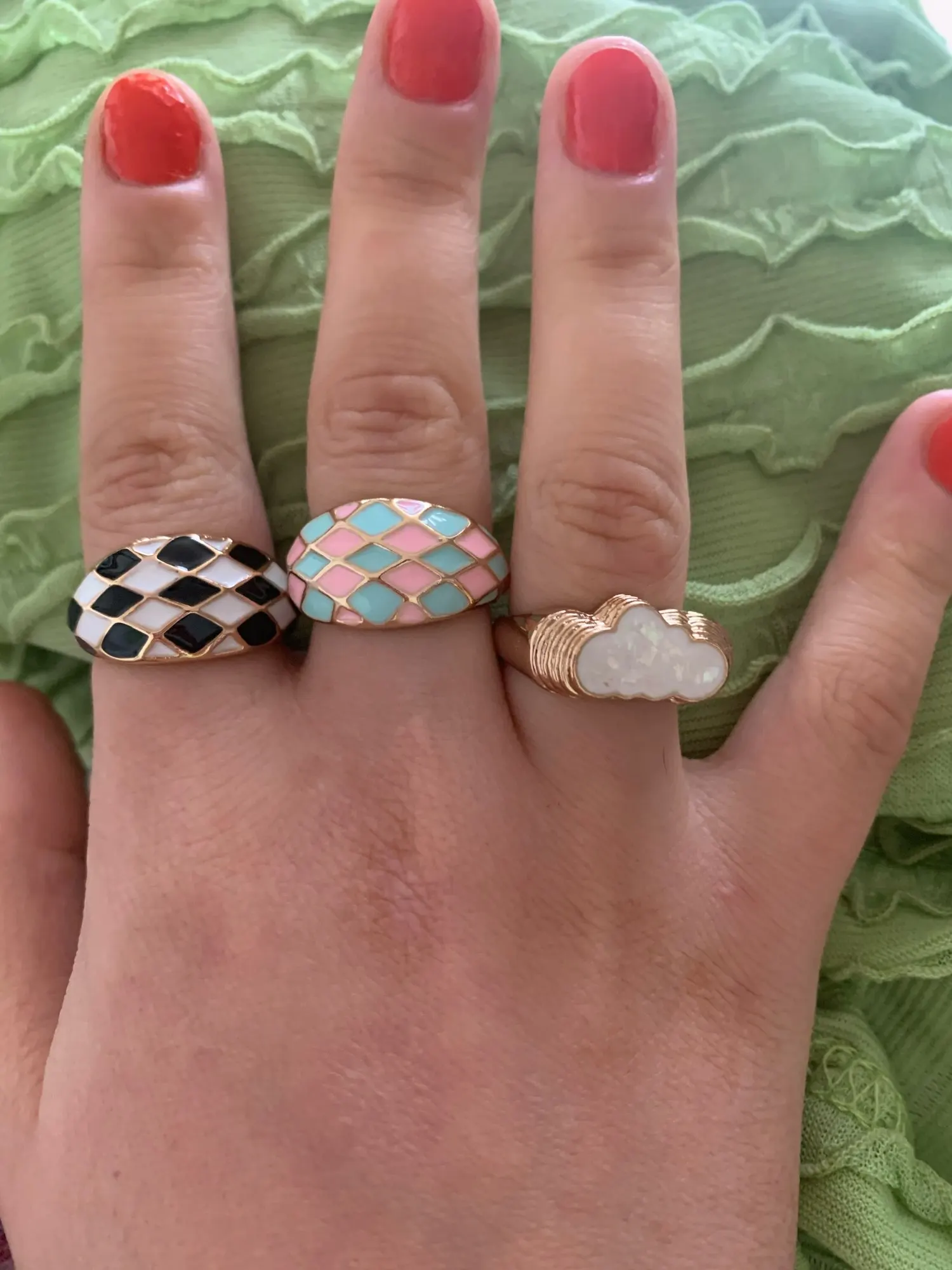 Женское Винтажное кольцо в клетку, креативное разноцветное эмалированное геометрическое кольцо в виде капли, Ювелирное Украшение в эстетике Y2K