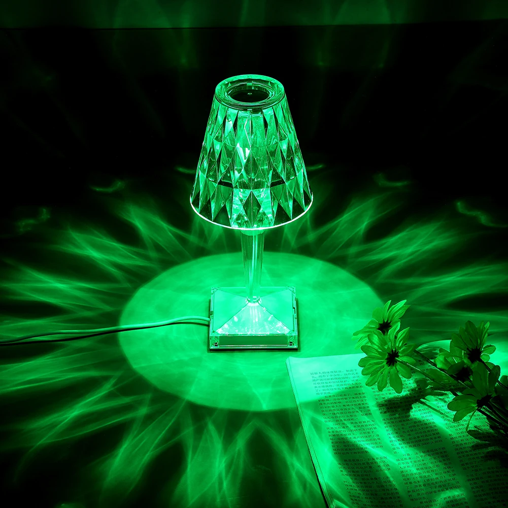 Романтическая настольная лампа, акриловый бриллиант, USB, сенсорный датчик для спальни, гостиной, настольная лампа, кабинет, арт-деко рядом с ночным освещением