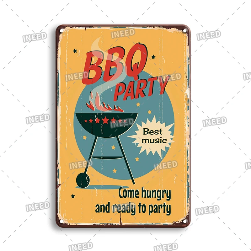 Металлическая ретро-табличка для суши, металлическая табличка для барбекю, пиццы, металлические знаки, шикарная картина из железа