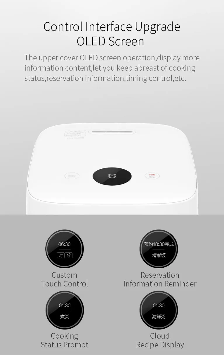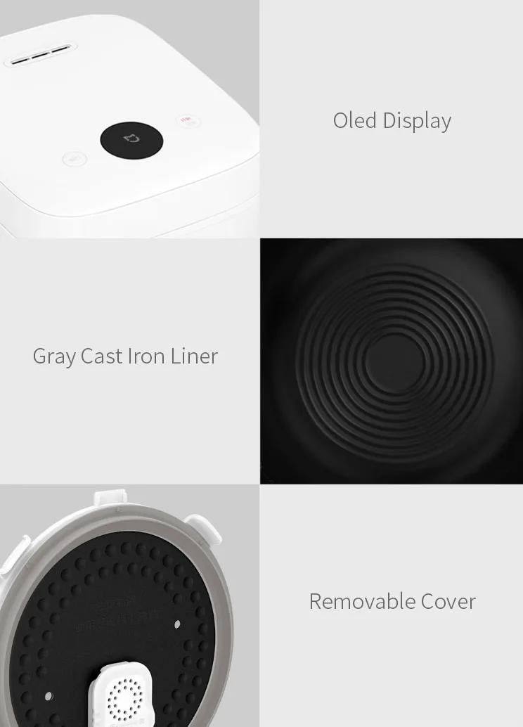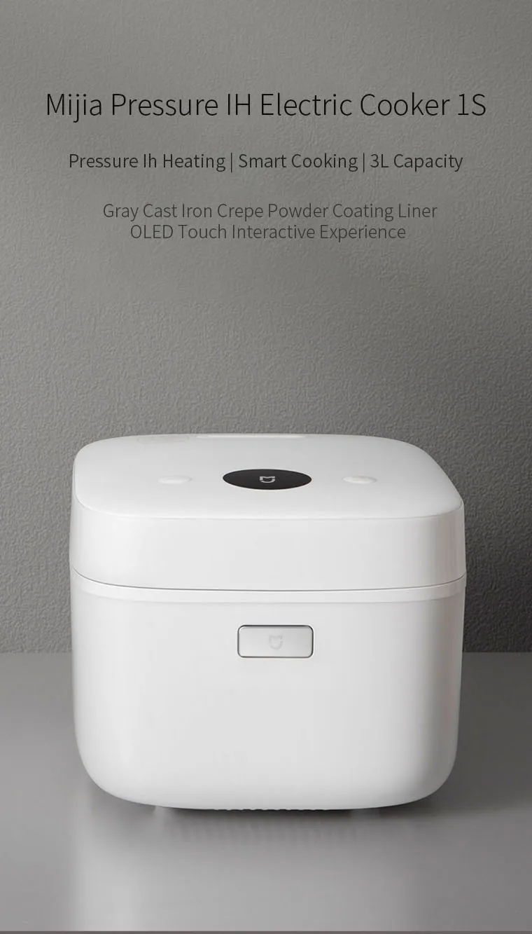 Бренд Mijia Размер изделия 300*251*212 мм Внутренний материал Чугун Цвет Белый Вес 6,5 кг Размеры 30x25,1x21,20 см/11,81x9,88x8,35 дюймов Ёмкость 3л Напряжение 220V / 50Hz Номинальная мощность 1660 Вт Нагревательная модель IH Отопление Фиксированное рабочее давление 20 кПа Беспроводная связь CMIIT ID : 2017DP6053 модуль радиопередатчика Wi-Fi IEEE802.11b/g/n 2,4 ГГцПосылка включает в себя: 1 х рисоварка 1 x рисовая ложка 1 суповая ложка 1 x мерный стаканчик 1 х шнур питания