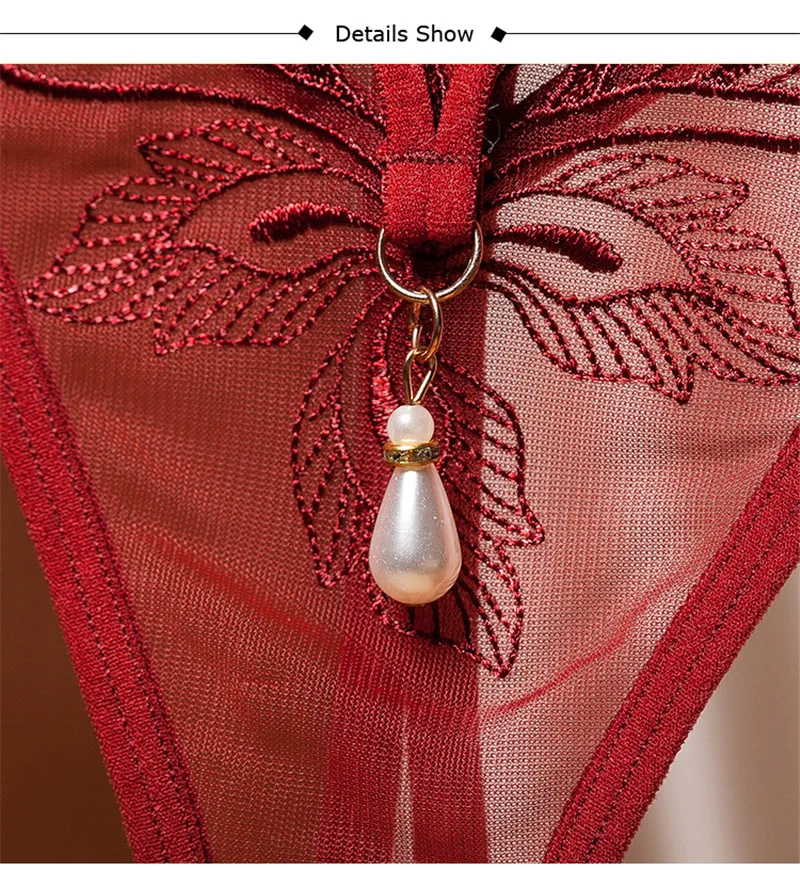 Женское нижнее белье, сексуальные трусики, трусы с открытой промежностью, соблазнительное эротическое белье, стринги с вышивкой, стринги с жемчугом