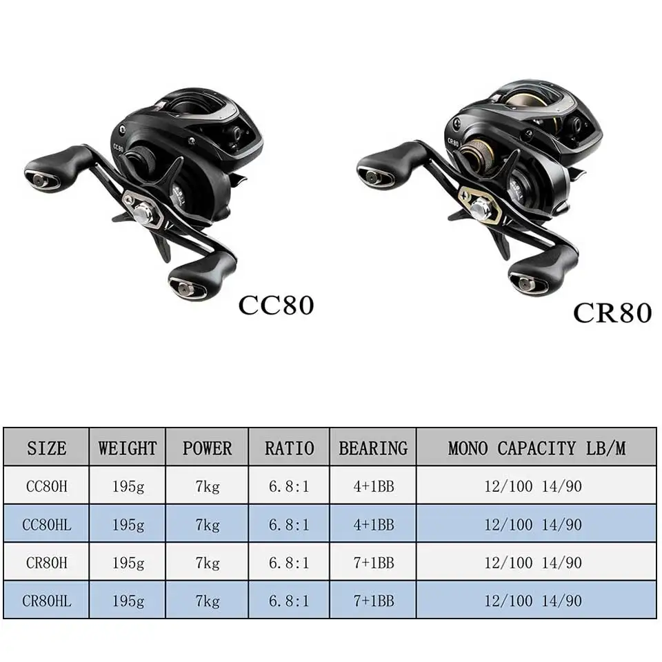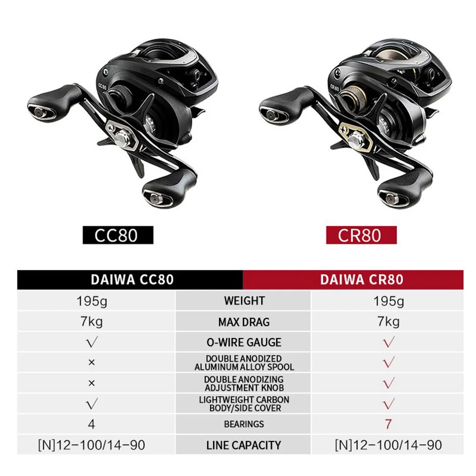 Рыболовная катушка DAIWA CR80CC80, Легкая металлическая катушка для заброса приманки, 6,8: 17.5:1, мощность 7 кг, 195 г