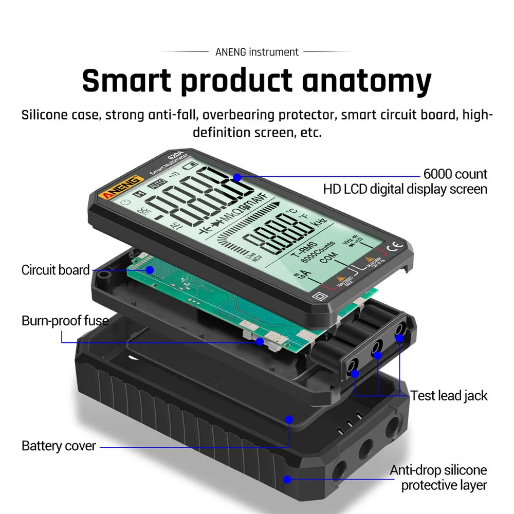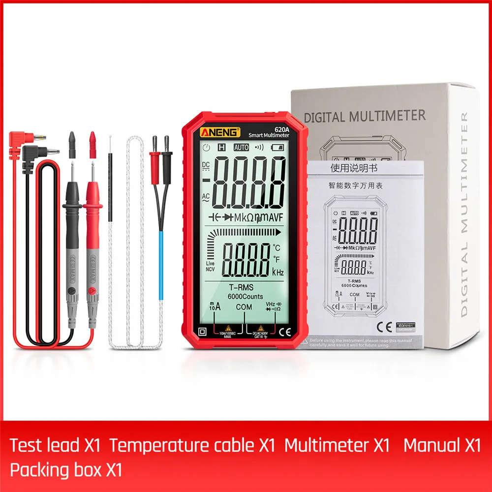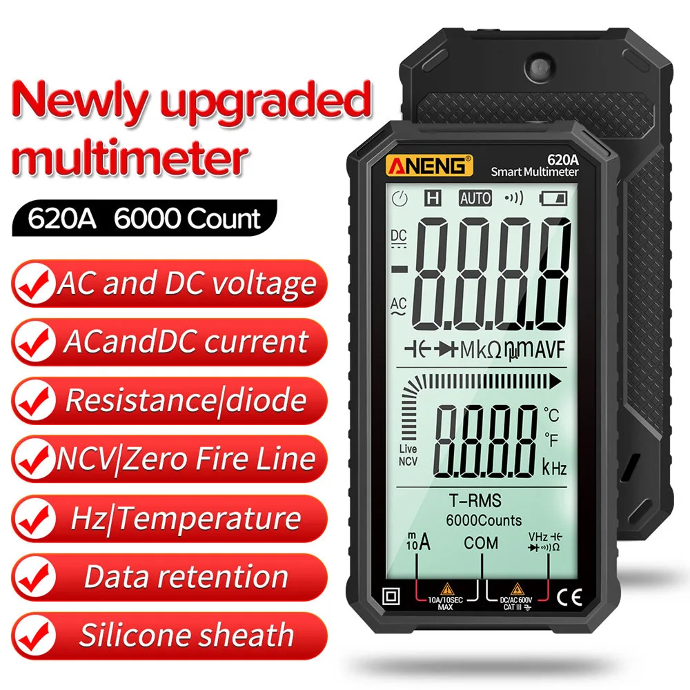 620A цифровой Смарт мультиметр-Транзистор тестер 6000 граф True RMS Автоматическая электрическая постоянной ёмкости, универсальный Конденсатор измеритель температуры сопротивление; Прямая поставка