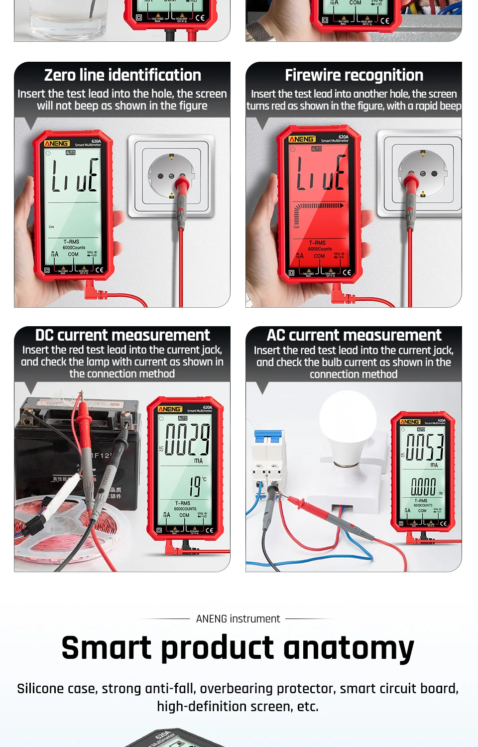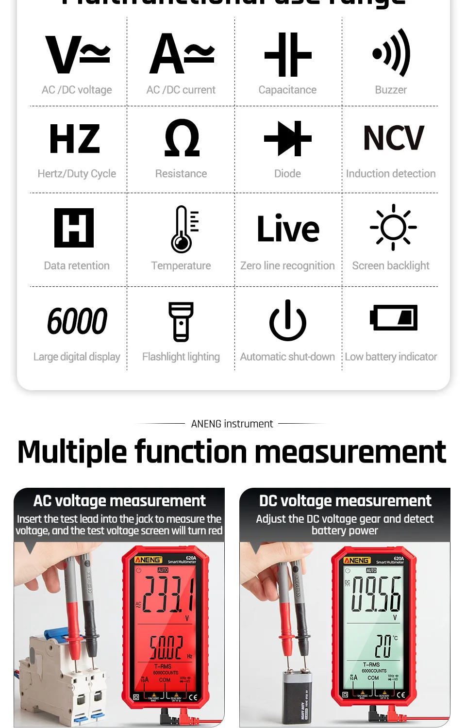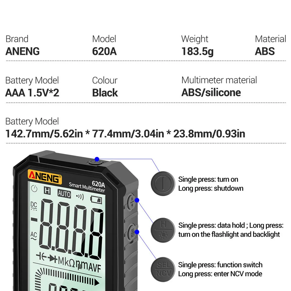 620A цифровой Смарт мультиметр-Транзистор тестер 6000 граф True RMS Автоматическая электрическая постоянной ёмкости, универсальный Конденсатор измеритель температуры сопротивление; Прямая поставка