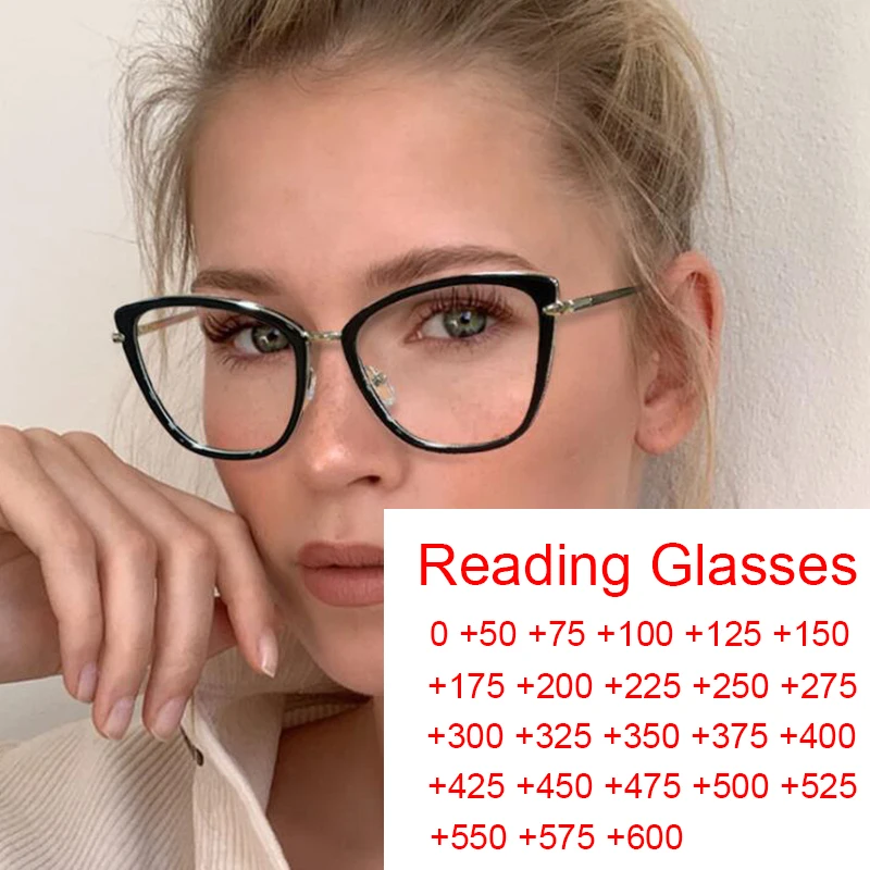 Очки для чтения женские в металлической оправе кошачий глаз, с защитой от сисветильник света