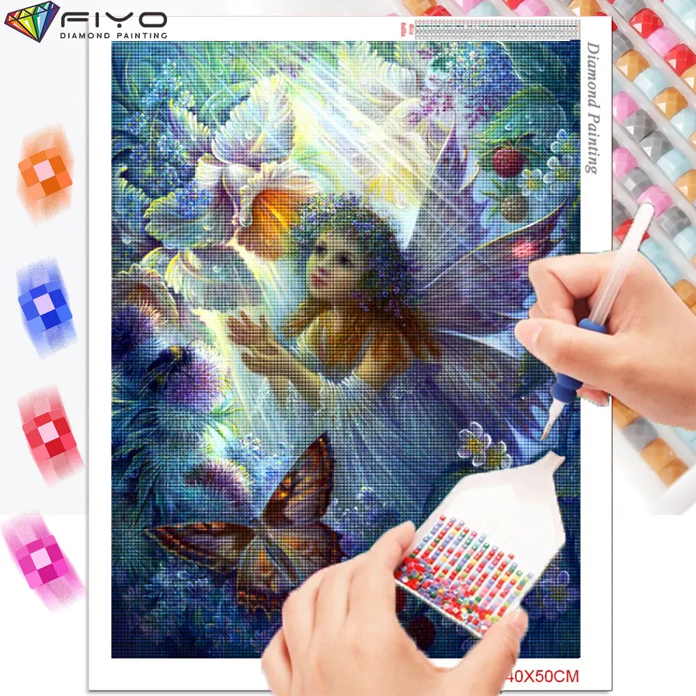 FIYO 5d алмазная живопись Красота сказочные, крест-накрест бисером полный квадратный набор для рисования с круглыми камнями и полотном с вышитыми цветами; Эльф Стразы Фэнтези домашний декор