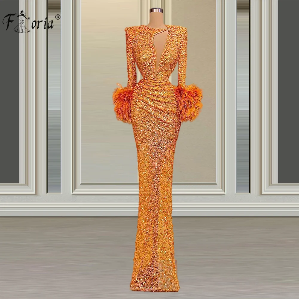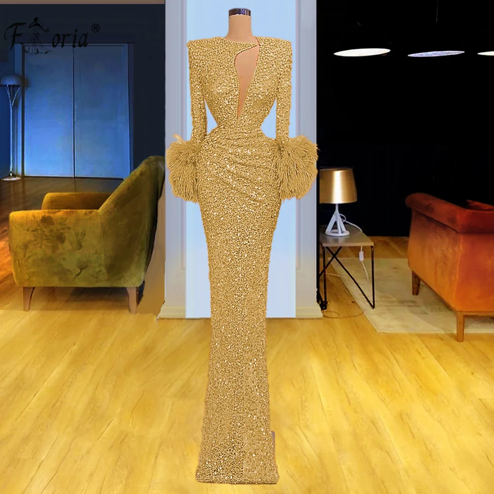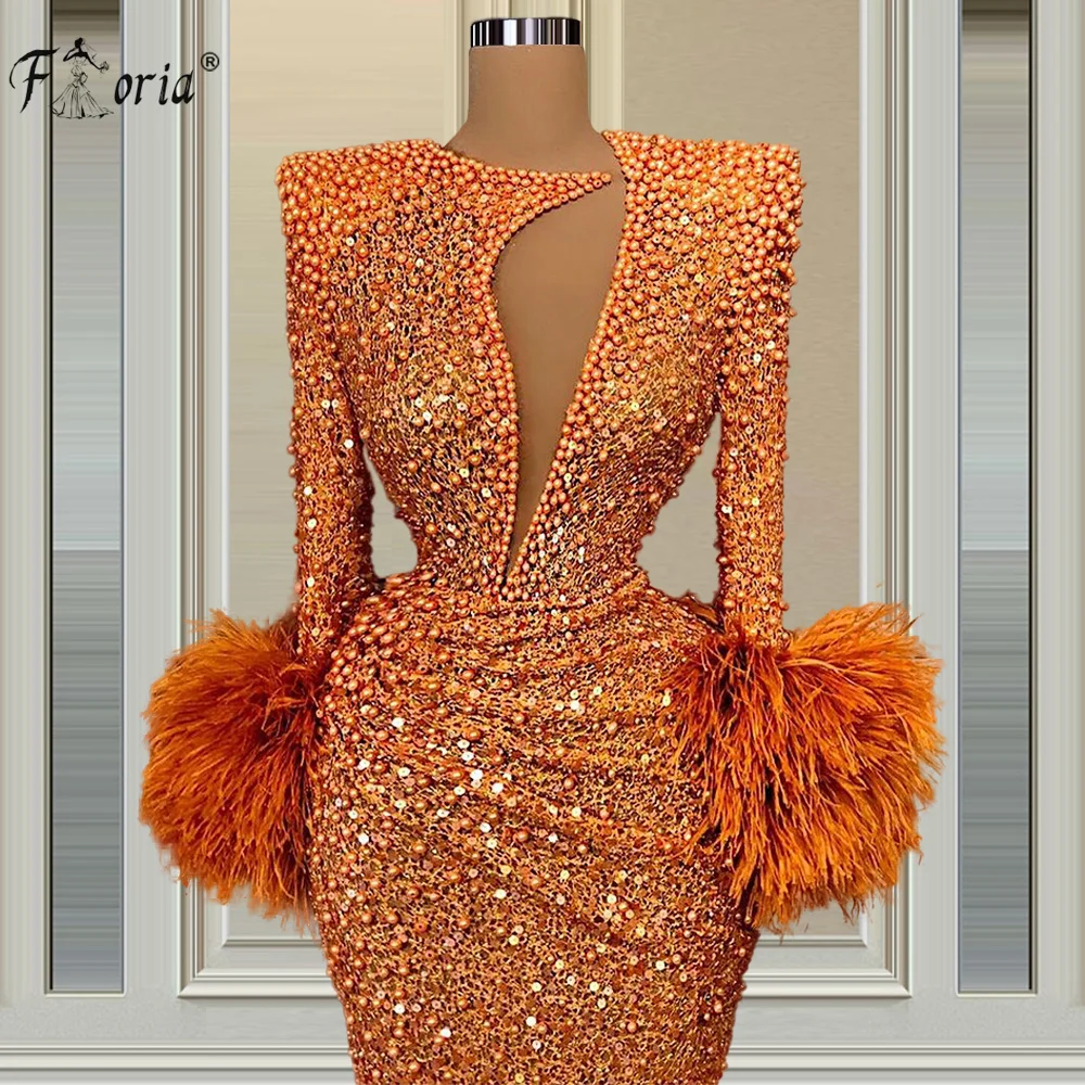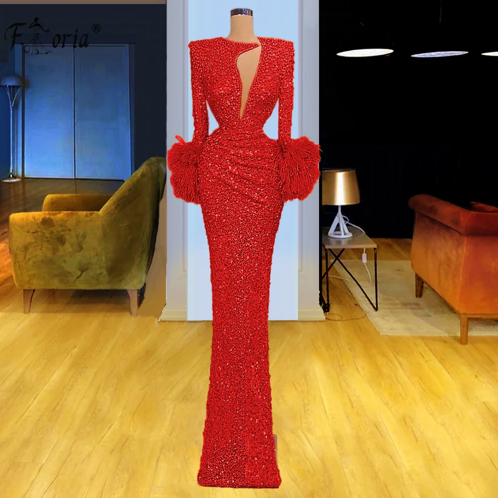 Вечернее платье-русалка, модель роскошные наряды с длинным рукавом года, с глубоким V-образным вырезом, украшенное бисером и перьями, на заказ, Сексуальные вечерние платья