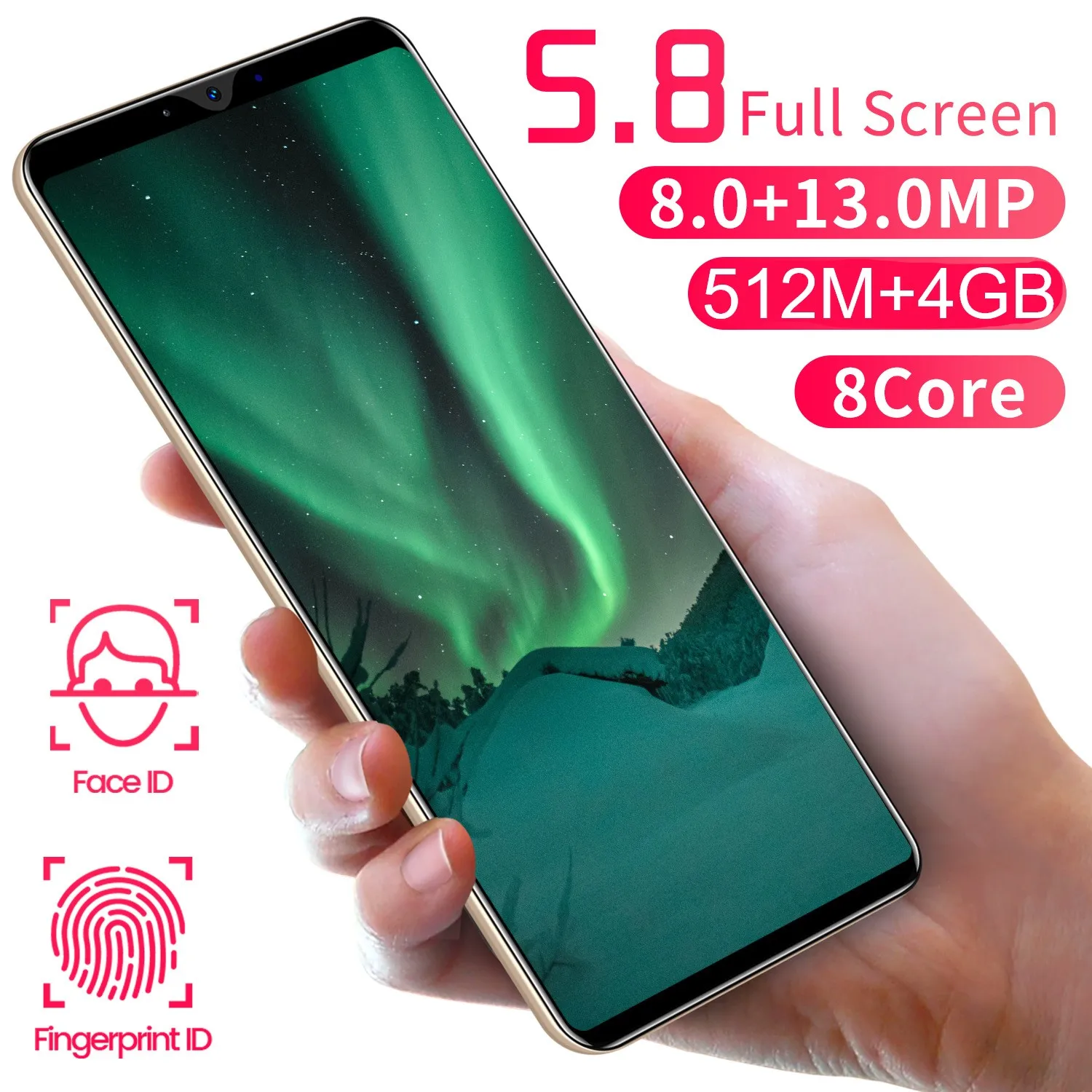 P43 5.8 дюймов дисплей смартфона с 512M + 4GB 8 + 13 Мп 8 Core Поддержка Face/Fingerprint разблокировка двух SIM Android мобильных телефонов