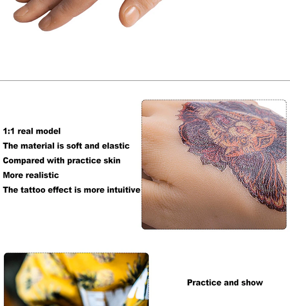Премиум силиконовая тату кожа для начинающих Практика левая/правая фальшивая Татуировка ручная модель манекен поддельная кожа для тату поставки тату НаборСпецификация практики татуировки:Категория: поддельные татуировки для практикиСостояние: 100% новыйЦвет: как настоящий цвет кожи, см. ИзображениеМатериал: мягкий силиконУпаковка: 1 x татуировка для тренировки кожиОсобенности практики татуировки:-Изготовлен из мягкого силикона и похож на настоящую человеческую руку, текстура близка к коже человека.-Линии и поры руки четко видны, чрезвычайно реальны.-Татуировка поддельная рука используется для практики татуировки и улучшения техники татуировки.-Также используется для демонстрации и украшения, чтобы подчеркнуть артистизм и технику в тату-магазине.Практика татуировки Теплые советы рук:❤Ручная Татуировка не может быть использована повторно.❤Из-за плотности материала, вам может потребоваться несколько раз повторять рисунок, чтобы лучше сохранить чернила на тренировочной руке для лучшей работы.❤Пожалуйста, убедитесь, что вы не возражаете, прежде чем сделать покупку ручки для тату, спасибо.Татуировка практика рука удовлетворение Гарантия:1) независимо от того, являетесь ли вы профессиональным художником-татуировщиком или любителем, новичком, татуировкой, если вы хотите научиться и улучшить навыки татуажа, наши силиконовые татуировки на осень-это именно то, что вам нужно!2) мы считаем, что наши продукты являются отличным качеством, которое мы можем предложить нашим клиентам, чтобы помочь им достичь идеальных результатов.3) Если по какой-либо причине вы не полностью удовлетворены татуировкой на yuelong. Просто верните его для полного возврата или обмена.