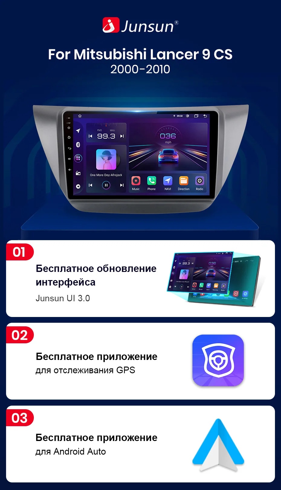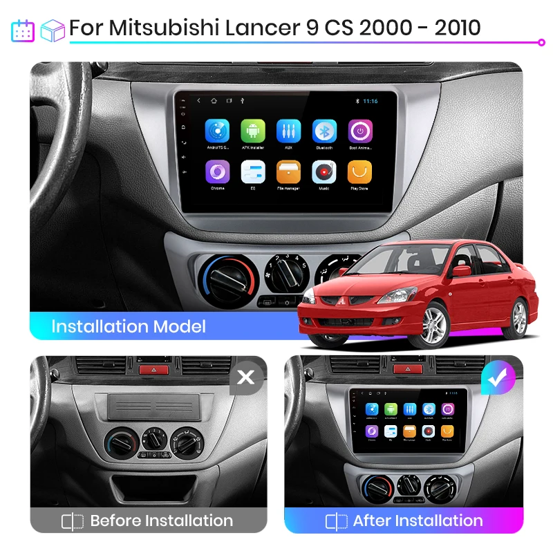 > Junsun V1 для Mitsubishi Lancer 9 CS 2000-2010 функция> Основные функции: Android 10,0 + 9 дюймовый IPS экран + четырехъядерный 1,2 ГГц (восемь ядер 1,8 ГГц опционально) + DDR3 1 ГБ флэш (2 ГБ/4 ГБ/6 Гб опционально) + 16 Гб памяти (32 ГБ/64 Гб/128 Гб опционально) + WIFI (сеть 4G опционально) + зеркальная связь + управление рулевым колесом + RDS/DSP (опционально)> Специальные функции:1. PIN-PIN:Junsun радиокабель питания-pin, прост в установке;2. Встроенный Carplay/ Android Auto: Поддержка версии V1/V1Pro, просто используйте кабель телефона, подключите его, стабильный и простой в использовании;3. Поддержка подголовника: только поддержка версии Junsun V1;Дополнительные аксессуары> Голосовое управление AI: Просто скажите слово команды Управляйте радио без рук, сделайте диск более безопасным> ADAS DVR камера, мониторинг давления в шинах, OBD2, внешний микрофон, RCA кабель;