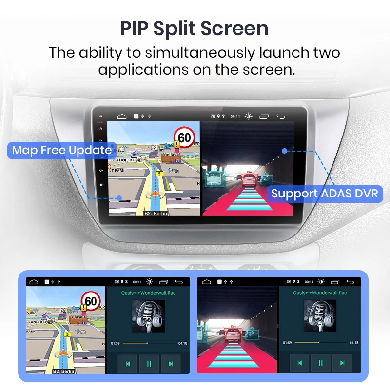 Вы можете использовать навигацию и другие приложения одновременно, такие как прослушивание музыки или включение функций ADAS и т. Д.