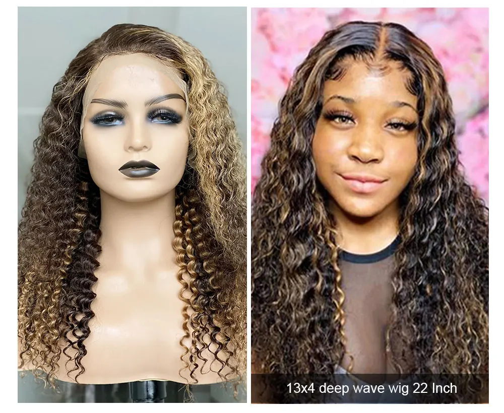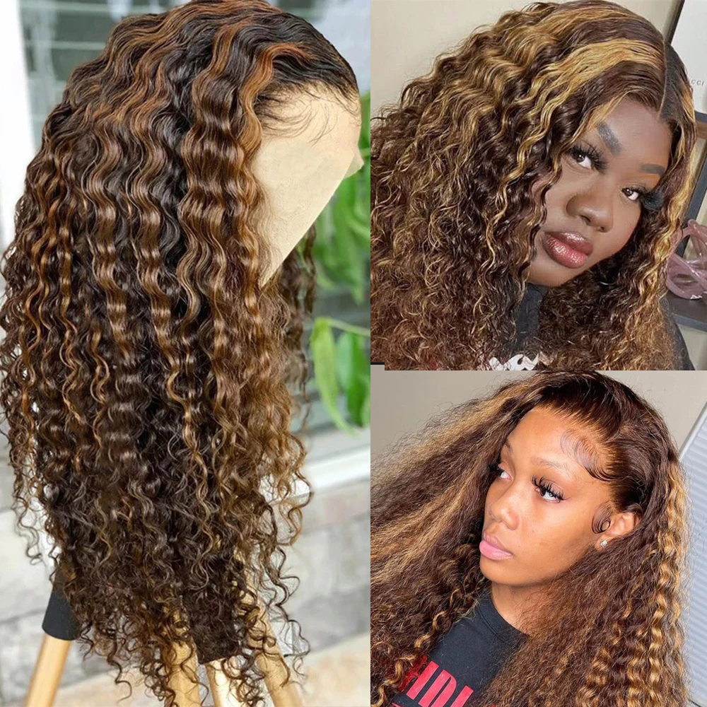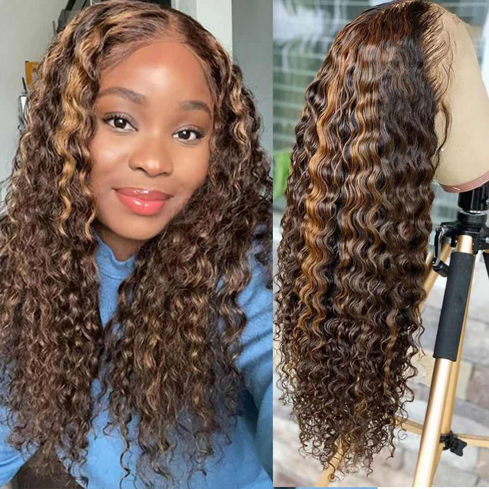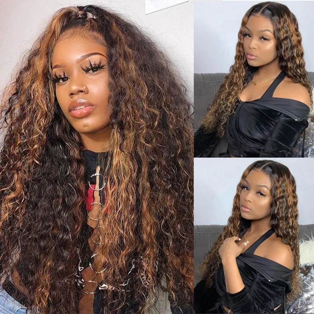 Парик из вьющихся человеческих волос Highligth, парик на сетке спереди, для черных женщин, 13x4, предварительно выщипанный, с эффектом омбре, с глубокой волной, без клея, на сетке спереди