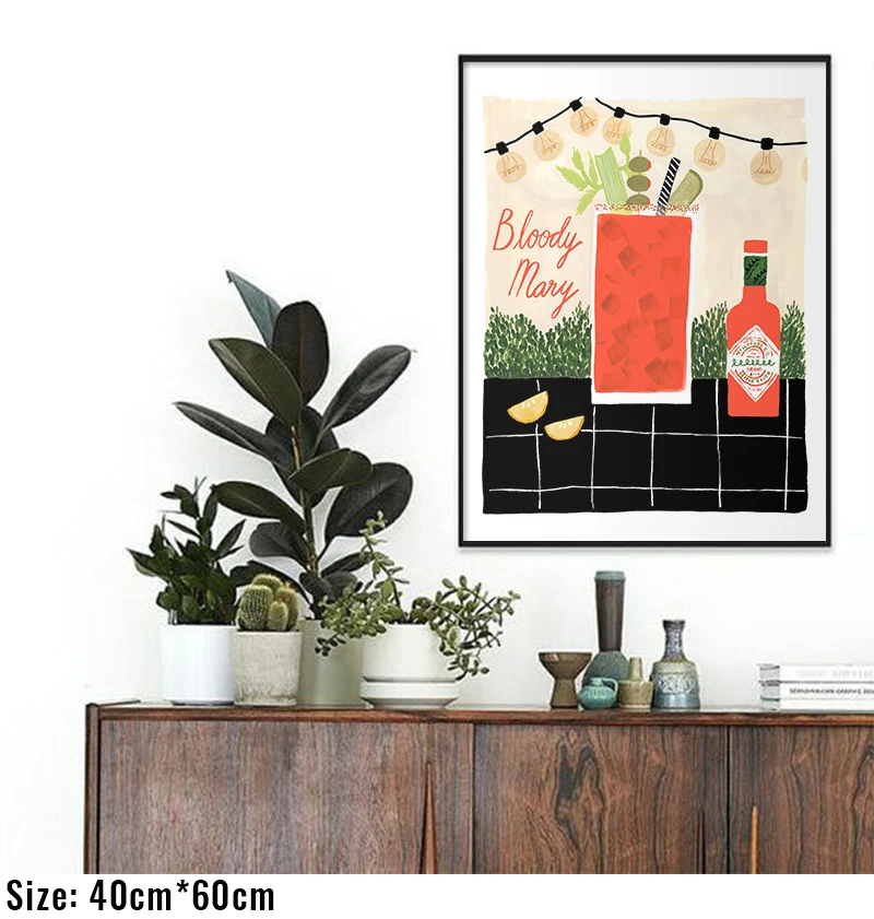 Скандинавский мультяшный коктейльный напиток холст печать плакат Маргарита настенная живопись картина ресторан бар клуб паб Современное украшение