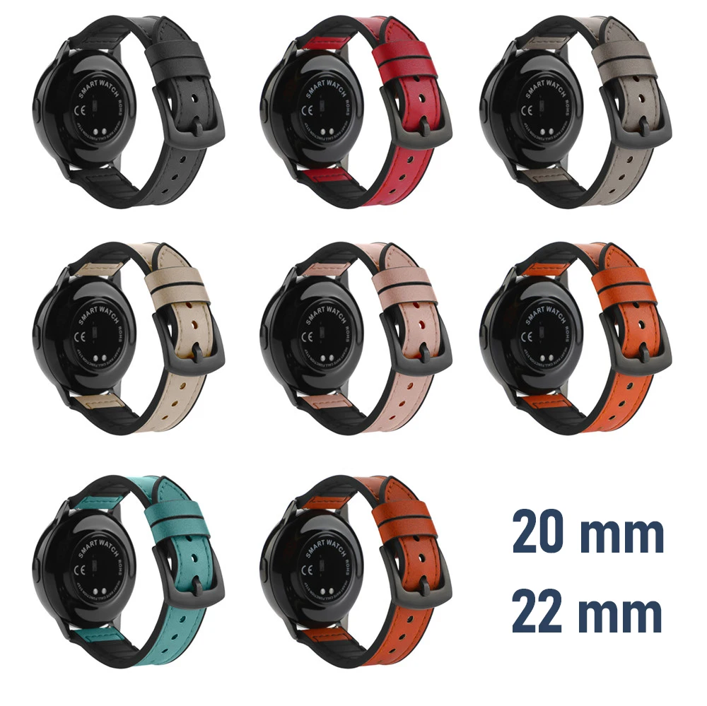 20 мм22 мм армированный чехол из силикона + кожаный ремешок для сма...