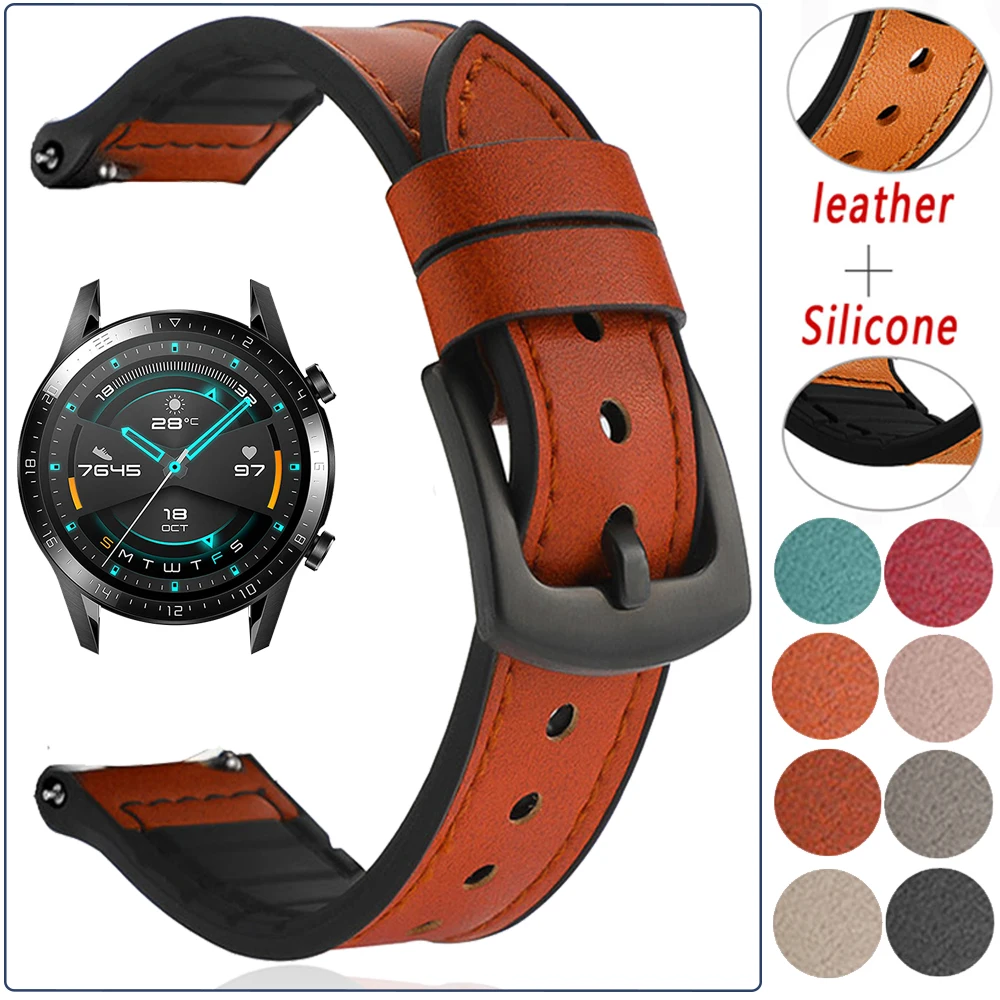 20 мм/22 мм кожа + Силиконовый ремешок для часов HUAWEI GT 2 Pro ремешок для часов для HUAWEI GT2 42/46 мм часы браслет роскошный ремешок для часов аксессуары