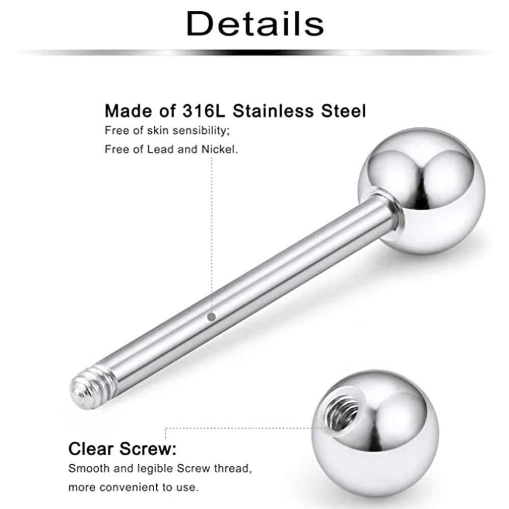 Штанга из нержавеющей стали для пирсинга, ювелирное изделие с внешней резьбой для языка, соска, 14 г, 16 г, 16 мм
