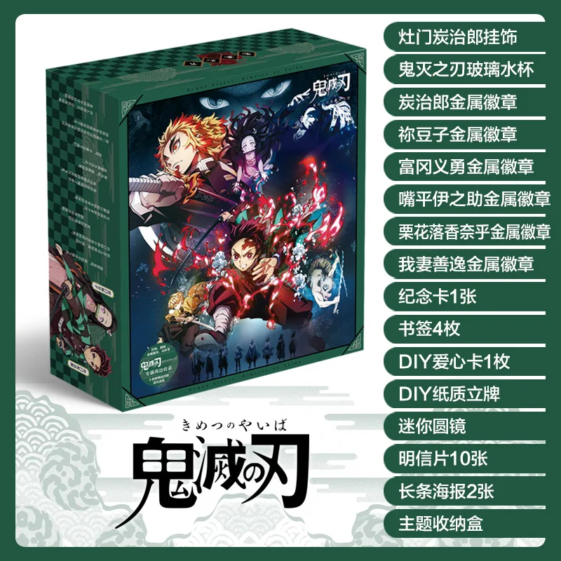 Аниме демон Slayer Kimetsu No Yaiba Подарочная коробка игрушки брелок значок булавки открытка вода Закладка чашка зеркало плакат наклейки на холодильник