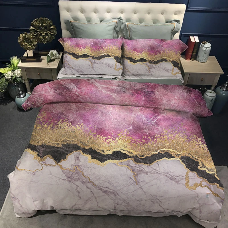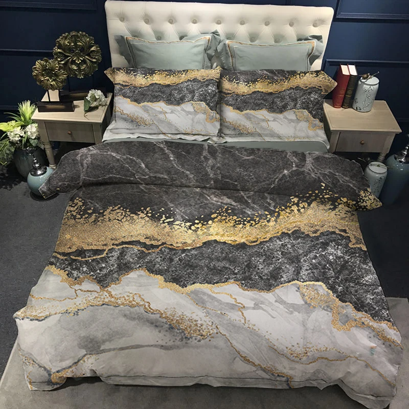 Роскошные комплекты постельного белья с пододеяльником набор один король Queen King Размеры Мрамор постельный комплект постельного белья 150x210 200x200 Стёганое одеяло крышки