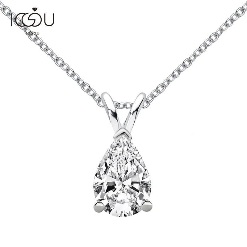 IOGOU 1,5 карат D Цвет помолвка Муассанит подвеска Neclace 925 серебро 6*9 Груша Муассанит Бриллиантовая цепь ювелирные изделия оптовая продажа