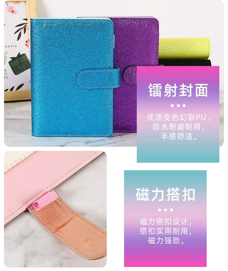 A5A6 PU Macaroon Laser Glittter Loose-Leaf Cover связывающий блокно...