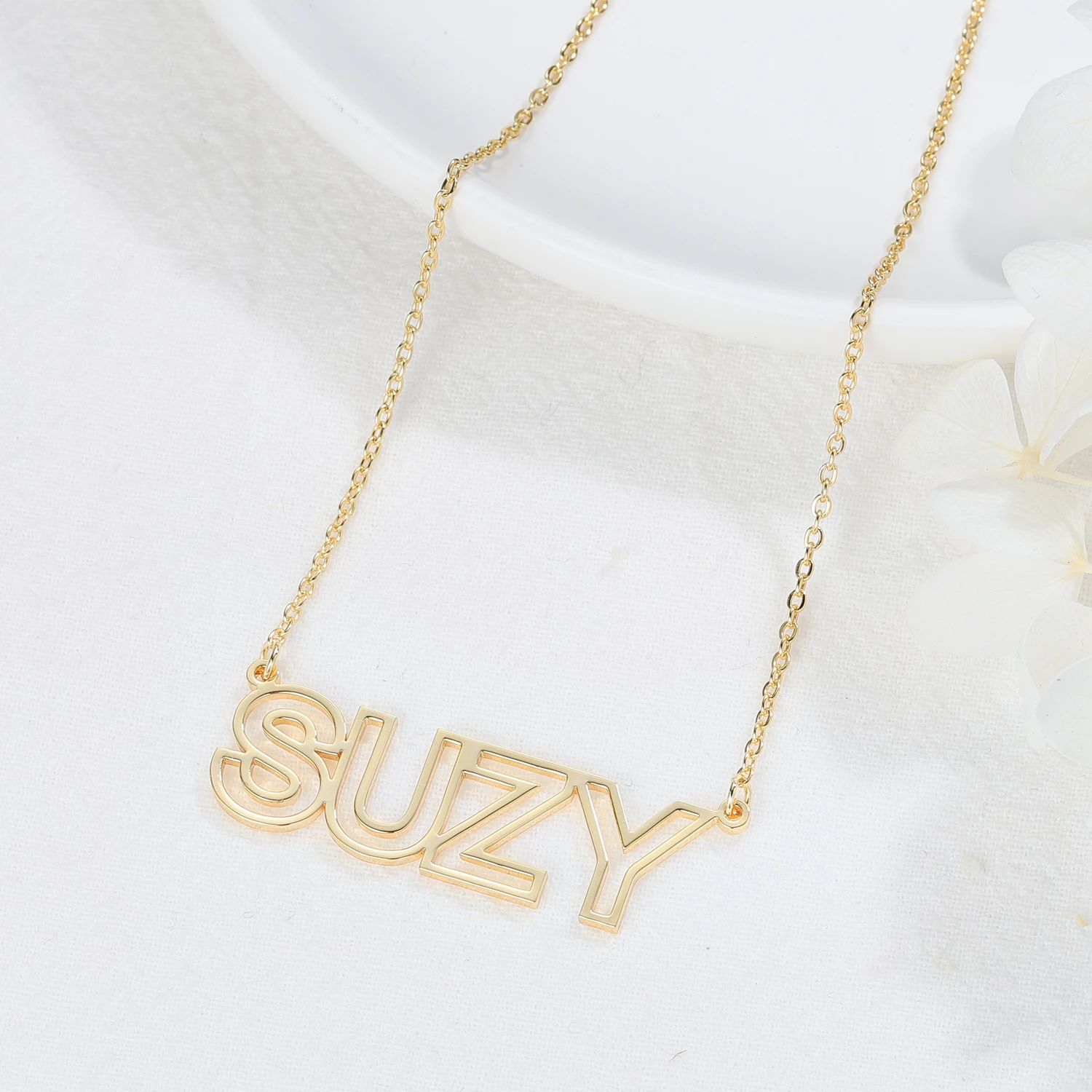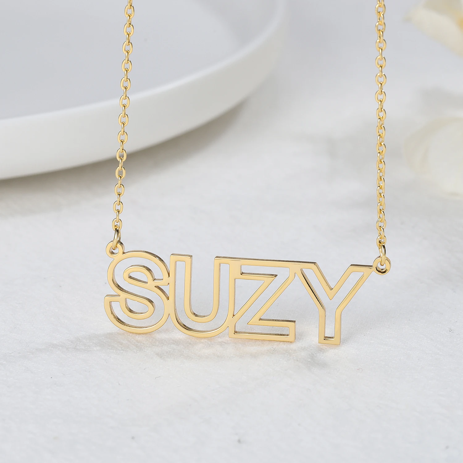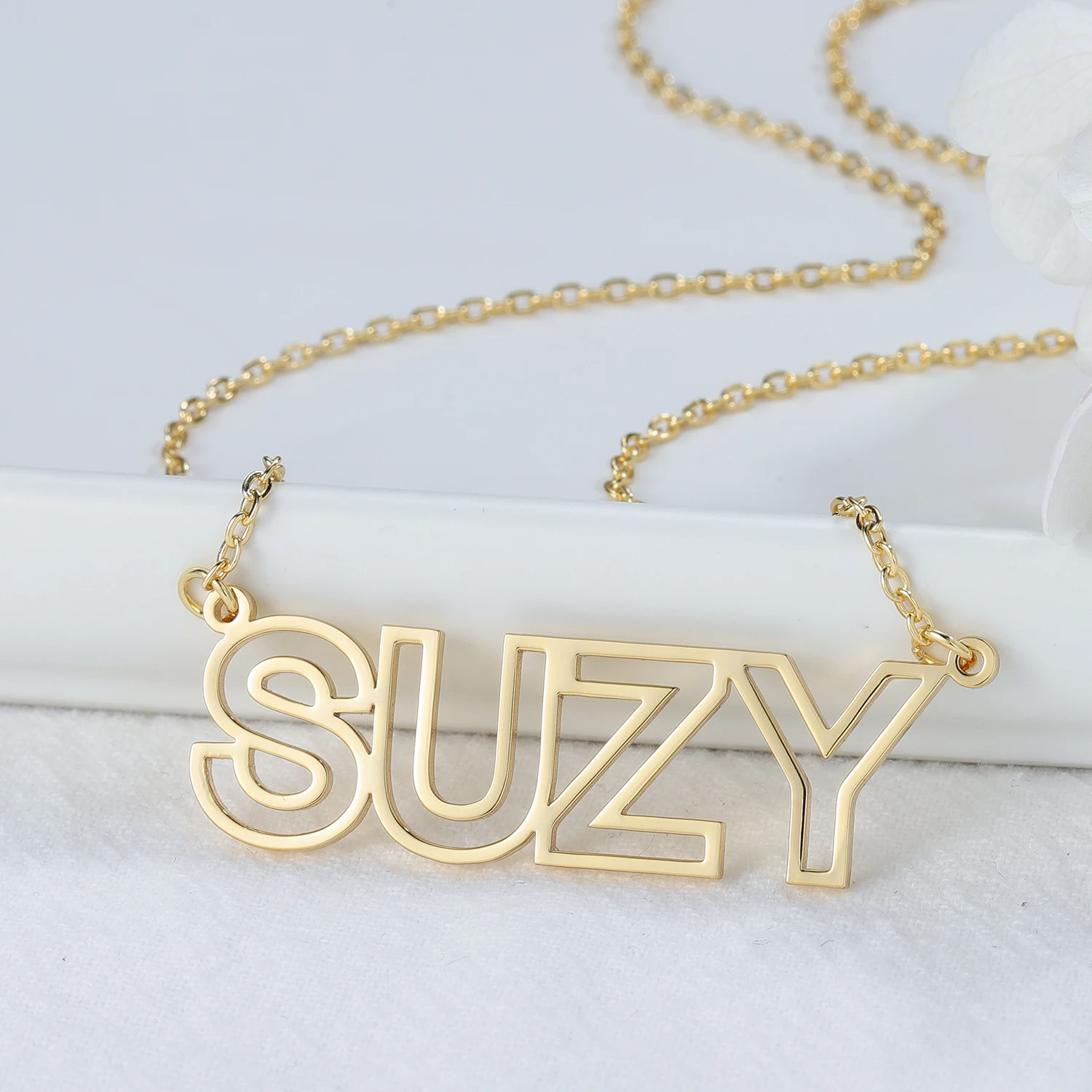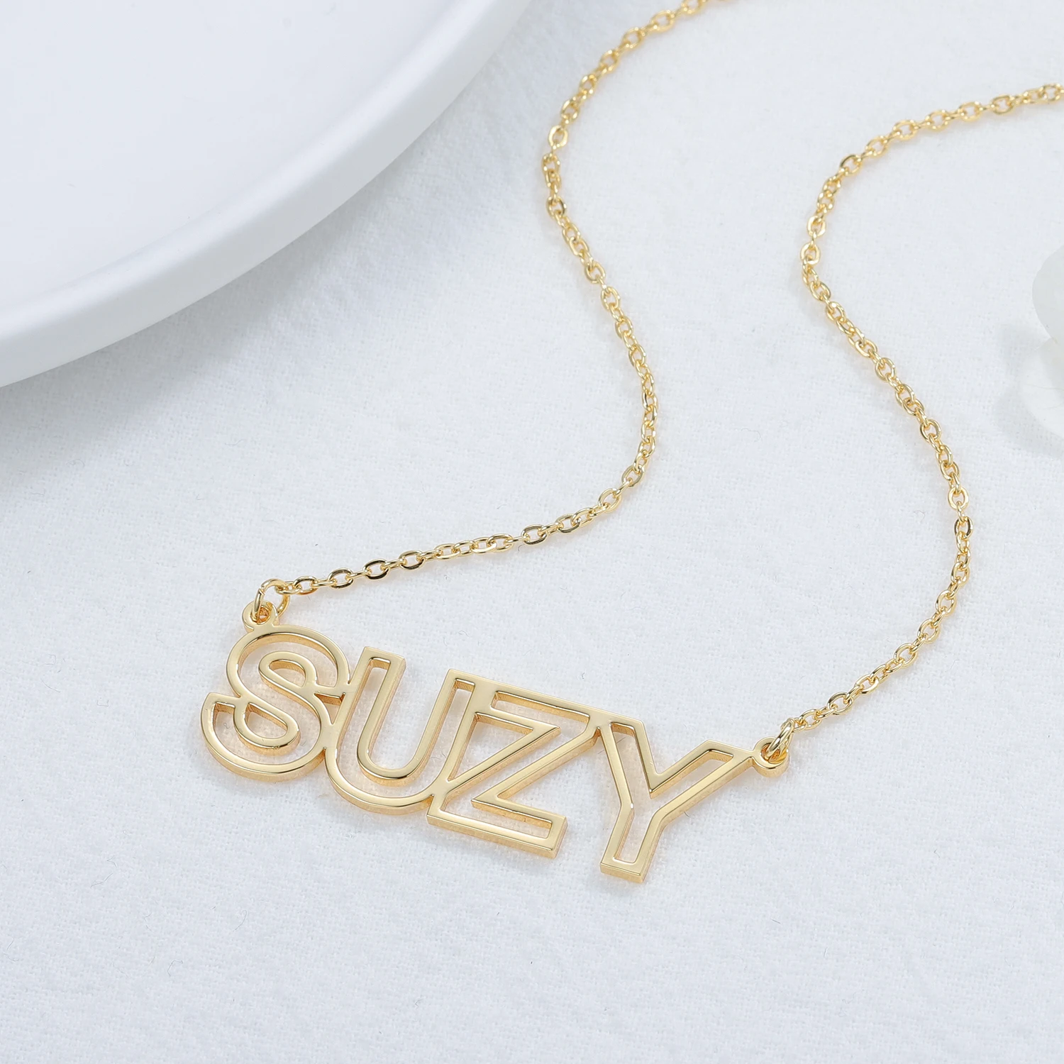 Ожерелье с именем на заказ, ожерелье с персонализированным контуром, современное ожерелье с вырезами и буквами, Женская табличка, ювелирные изделия из нержавеющей стали, подарок