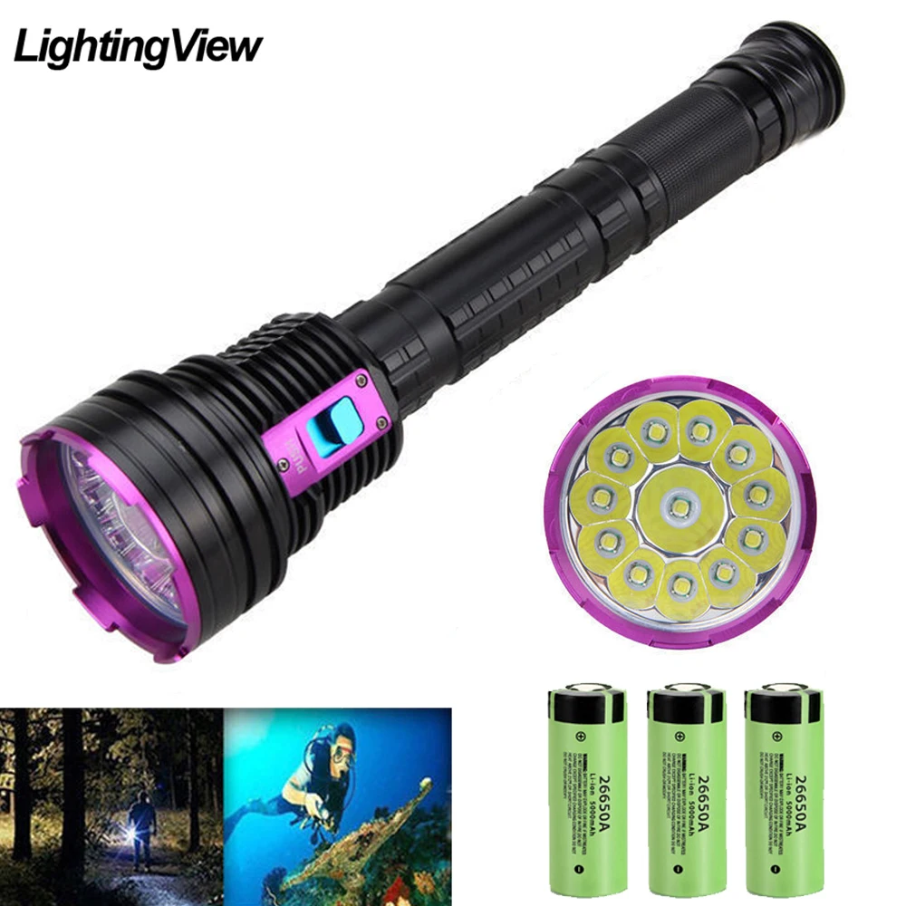 Светильник ingview 12xXM-L2 вспышка для подводного погружения и светильник подводный Фонари 26650 Дайвинг Фонарь для дайвинга подводного 200 м Дайвинг Подводная охота флэш-светильник
