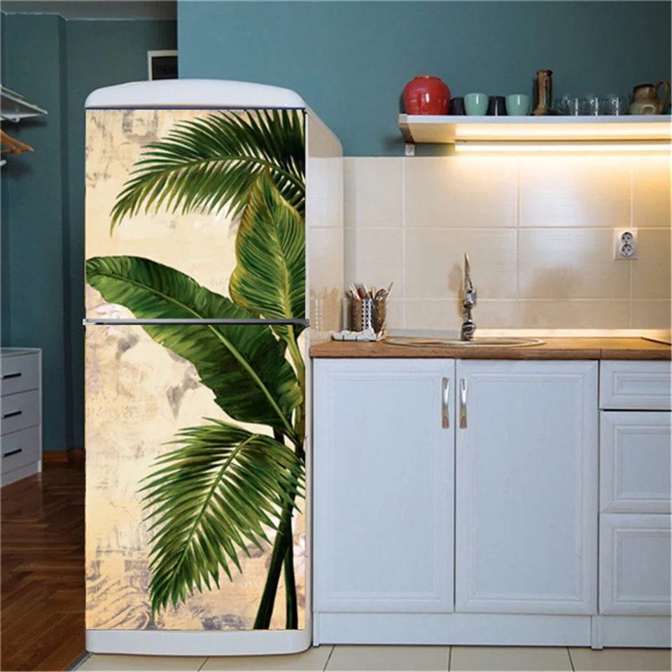 Зеленый лист цветок 3D обои для холодильника клей виниловые наклейк...