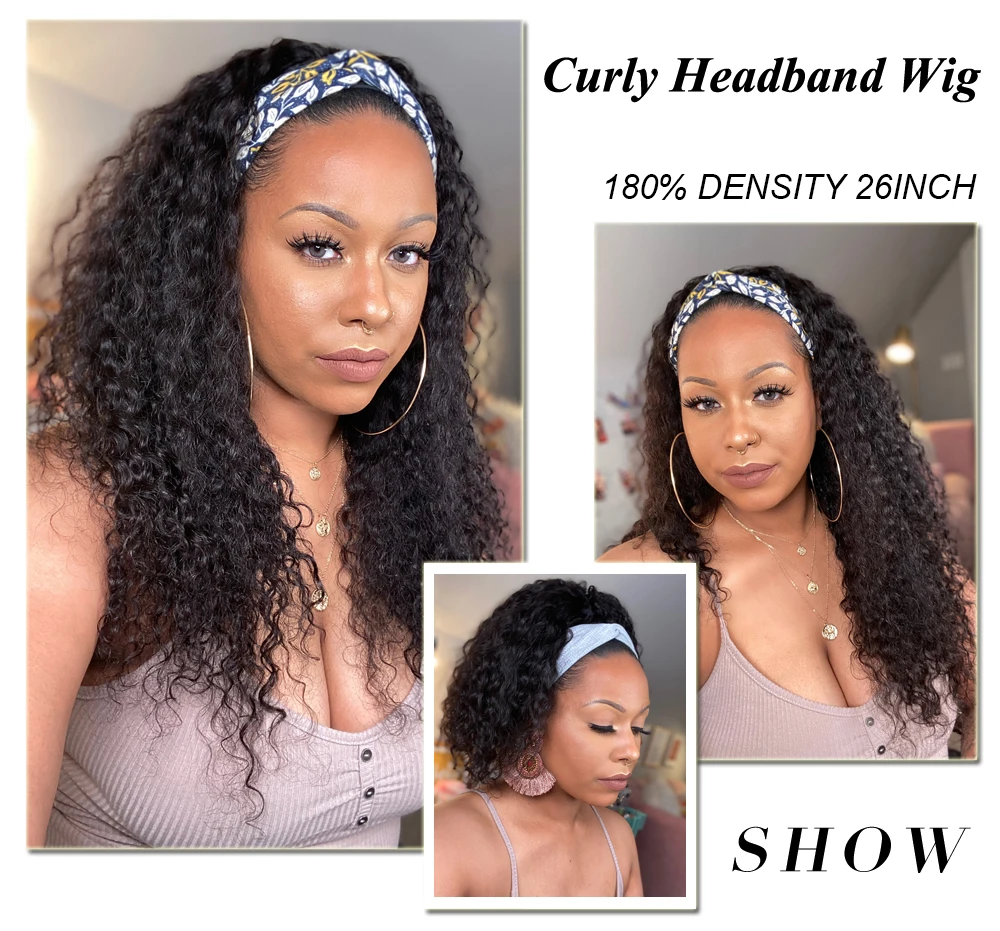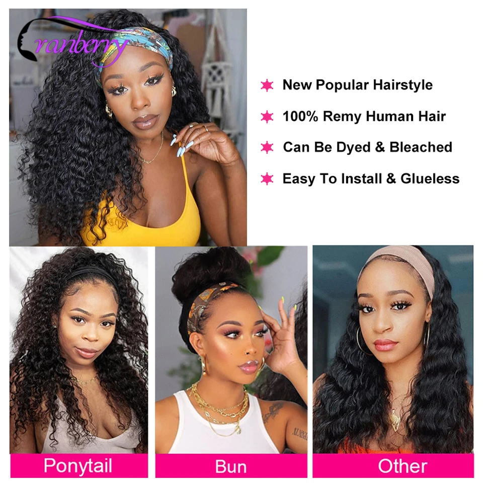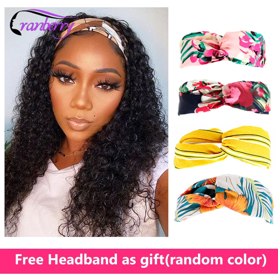 Бесклеевой клюквы волосы курчавые шелк парик с головной повязкой из...