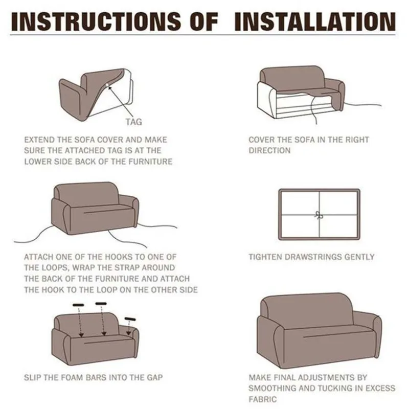 Пожалуйста, проверьте, есть ли глубокие зазоры в вашем диване. Наши чехлы для диванов не подходят для диванов с мелкими промежутками.