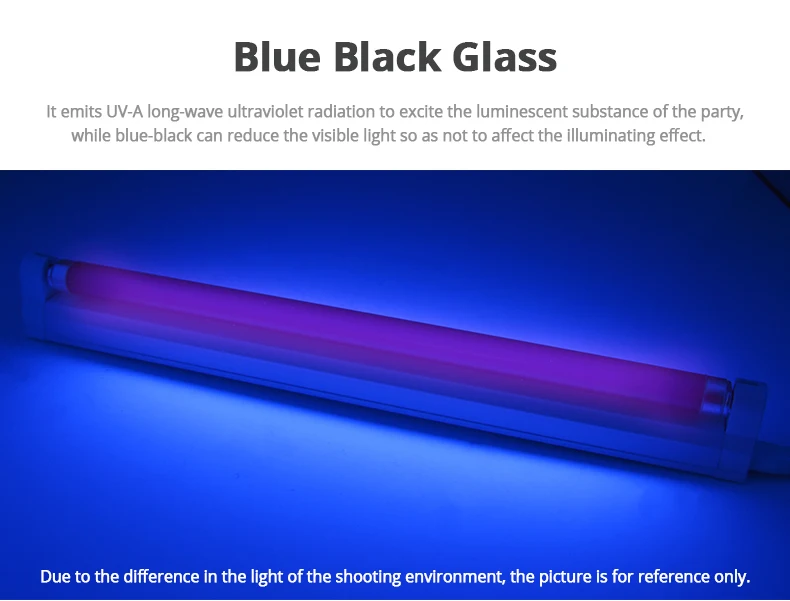Черная инспекционная трубка изготовлена из сине-черного стекла, а внутренняя стенка трубы покрыта фосфором. Светильник, генерируемый этим типом светильник, излучается только в диапазоне ультрафиолетовых волн 300-400 нм, а его центральное значение составляет 365 нм, что может Невидимый ультрафиолетовый светильник. Излучение преобразуется в видимый светильник, так называемый флуоресцентный эффект, поэтому они подходят для всех применений, связанных с флуоресцентным анализом.