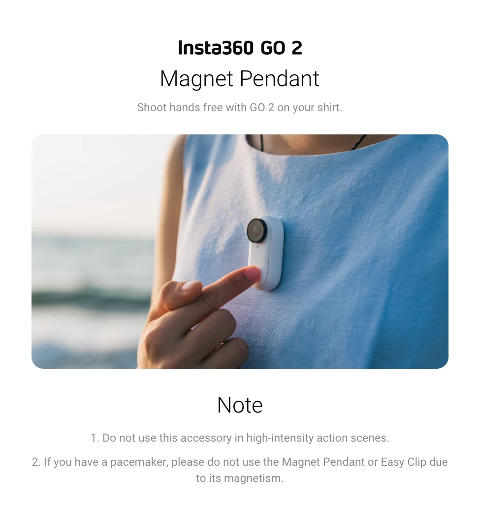 1. Каждая коробка GO 2 включает в себя уже одну Магнитная подвеска. Купите здесь дополнительный или запасной магнит.2. Не используйте этот аксессуар в условиях интенсивных действий.