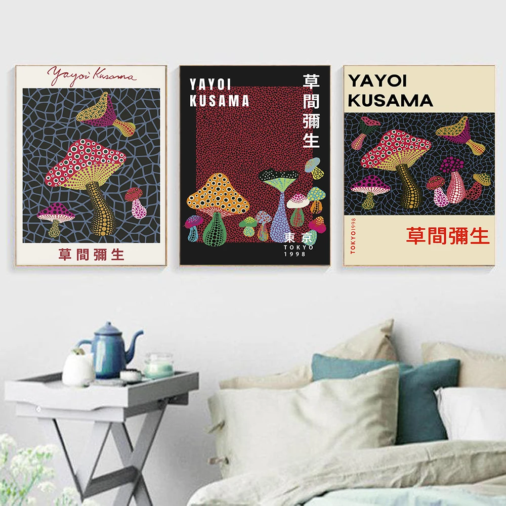 Yayoi Kusama художественные выставочные плакаты и печать галерея настенное искусство картина в виде грибов музейная Картина на холсте гостиная домашний декор