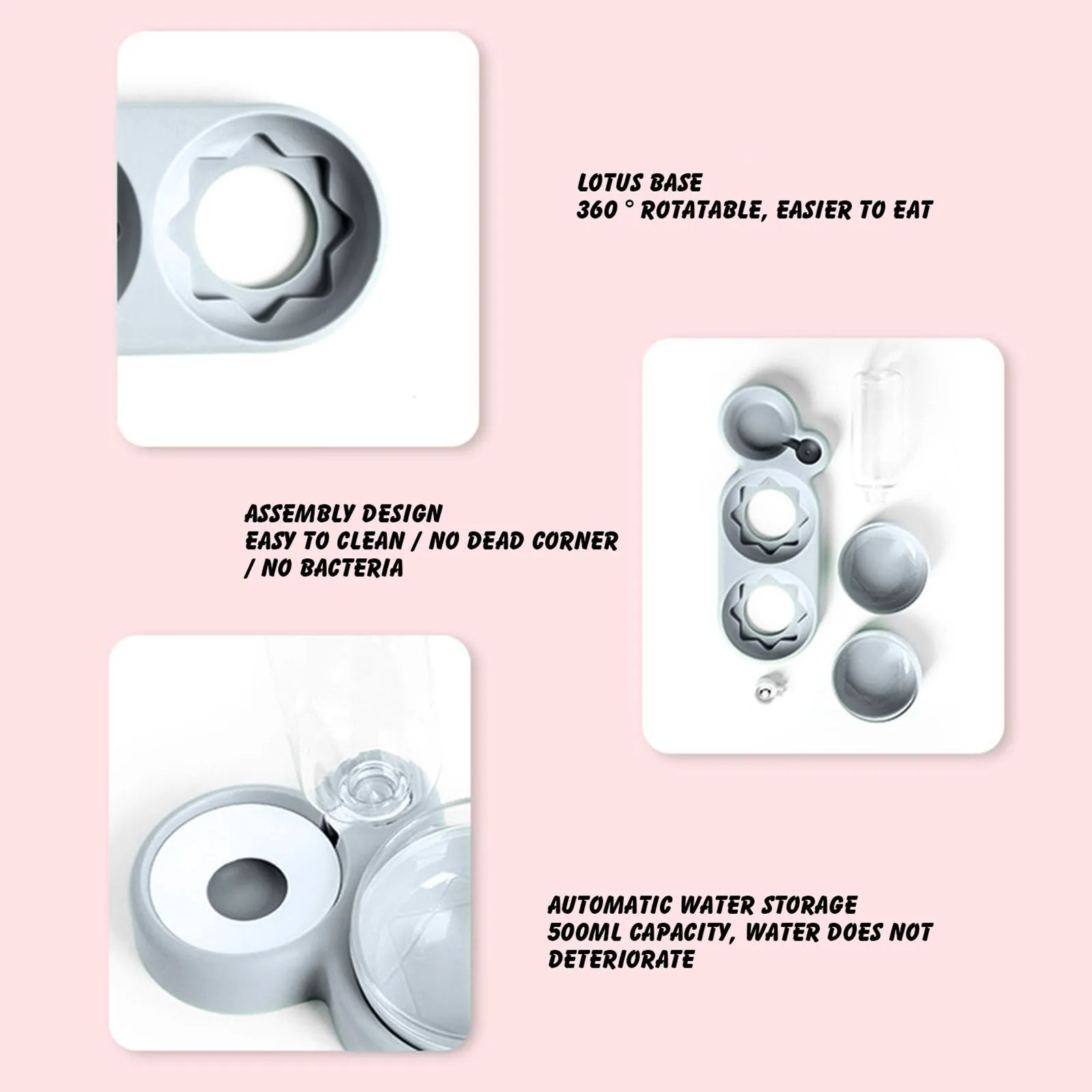 Миска для домашних животных кошек с двумя чашами Еда подачи воды с автоматическим диспенсер для воды с рисунком собачки и котика Еда чаша питьевой фонтанчик рельефные подставки блюдо трёх чаши