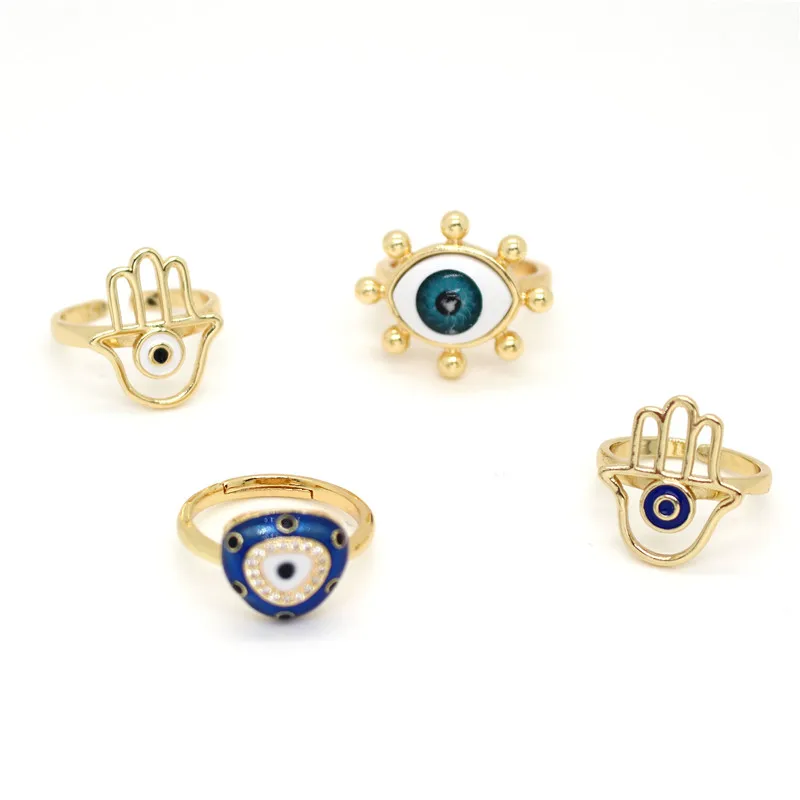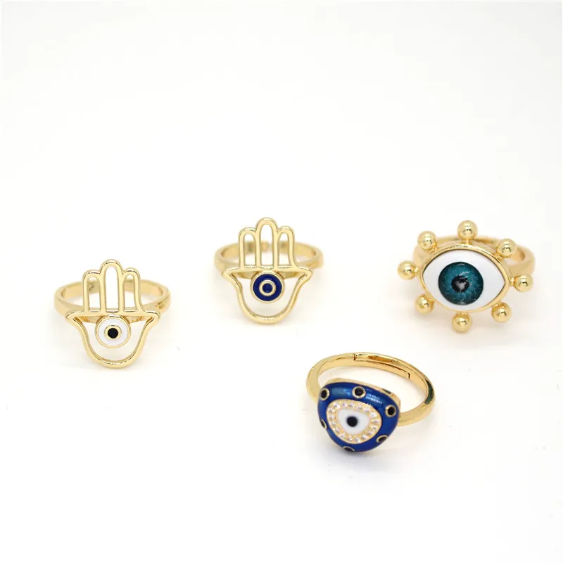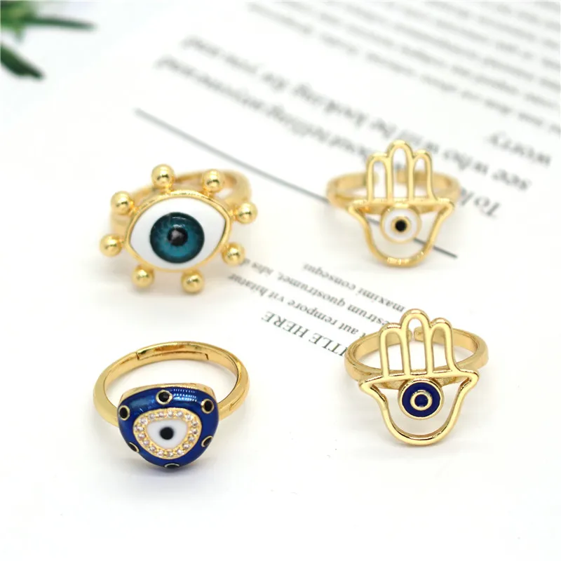 1 шт. металлический полый рука Фатимы сглаза Открытое кольцо для Для женщин Винтаж национальная блестящая отделка из горного хрусталя голубой глаз палец кольца Турецкая ювелирные изделия