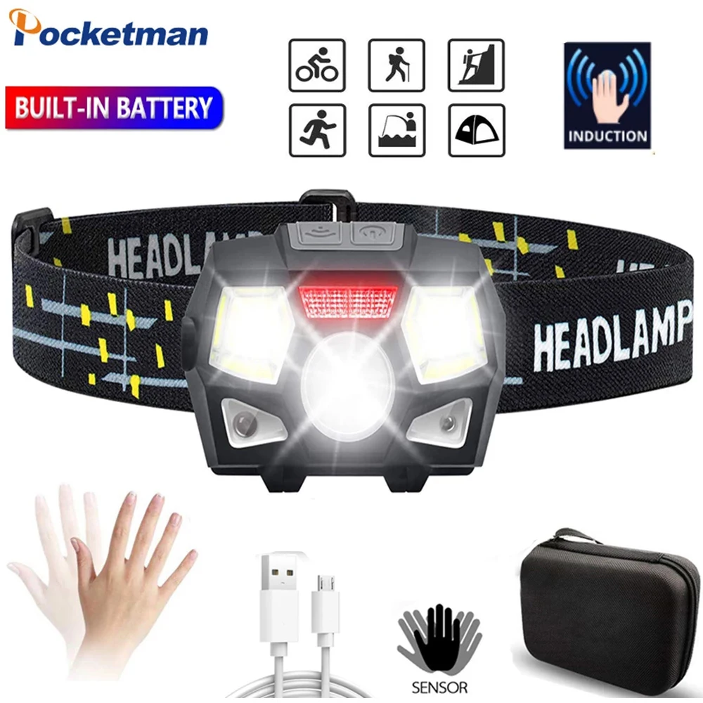 90000LM светодиодный головной светильник движения Сенсор головной светильник USB Перезаряжаемые фары Hands-Free светодиодный головной фонарь Водонепроницаемый для кемпинга Пеший Туризм
