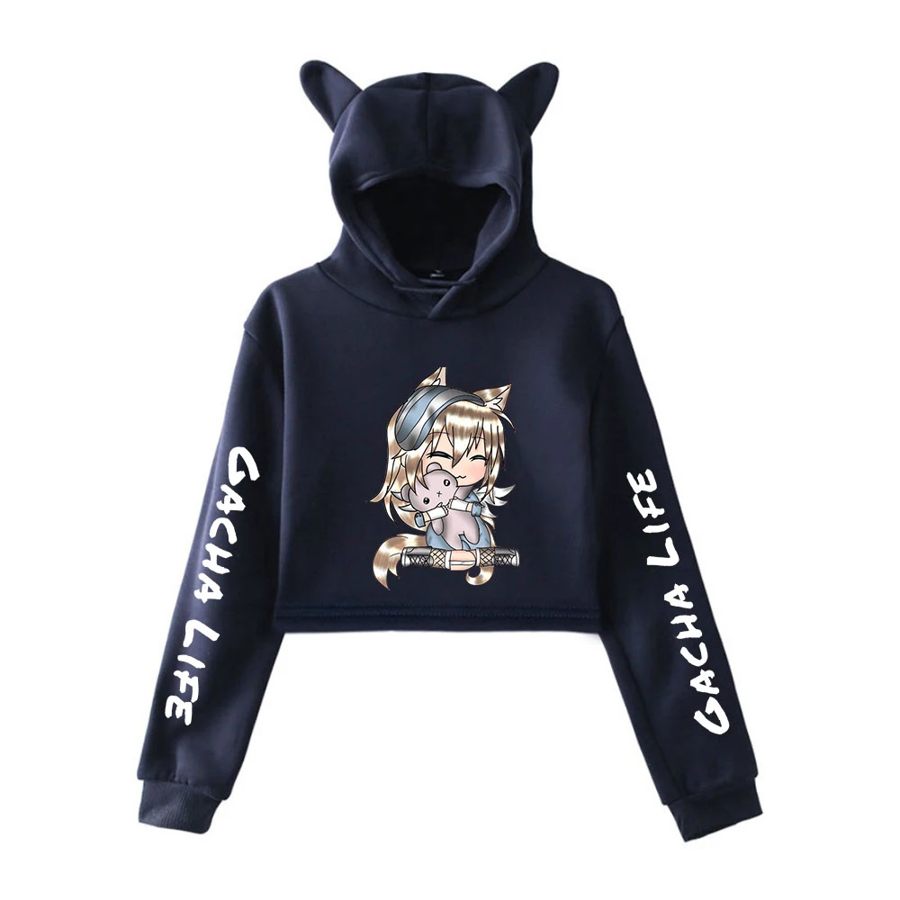 Горячая игра Gacha жизнь укороченный худи с кошачьими ушами Кофты для женщин; Пуловер для девочек; Kawaii; Спортивный костюм в стиле Harajuku; В стиле хип-хоп высокое качество одежды