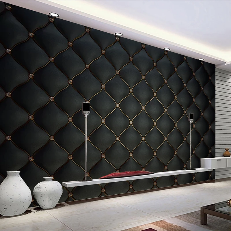 Настенные 3D фрески на заказ, роскошные кожаные обои черного цвета с мягкой сумкой для фотосъемки в гостиной, спальне, фоне под телевизор, домашний декор