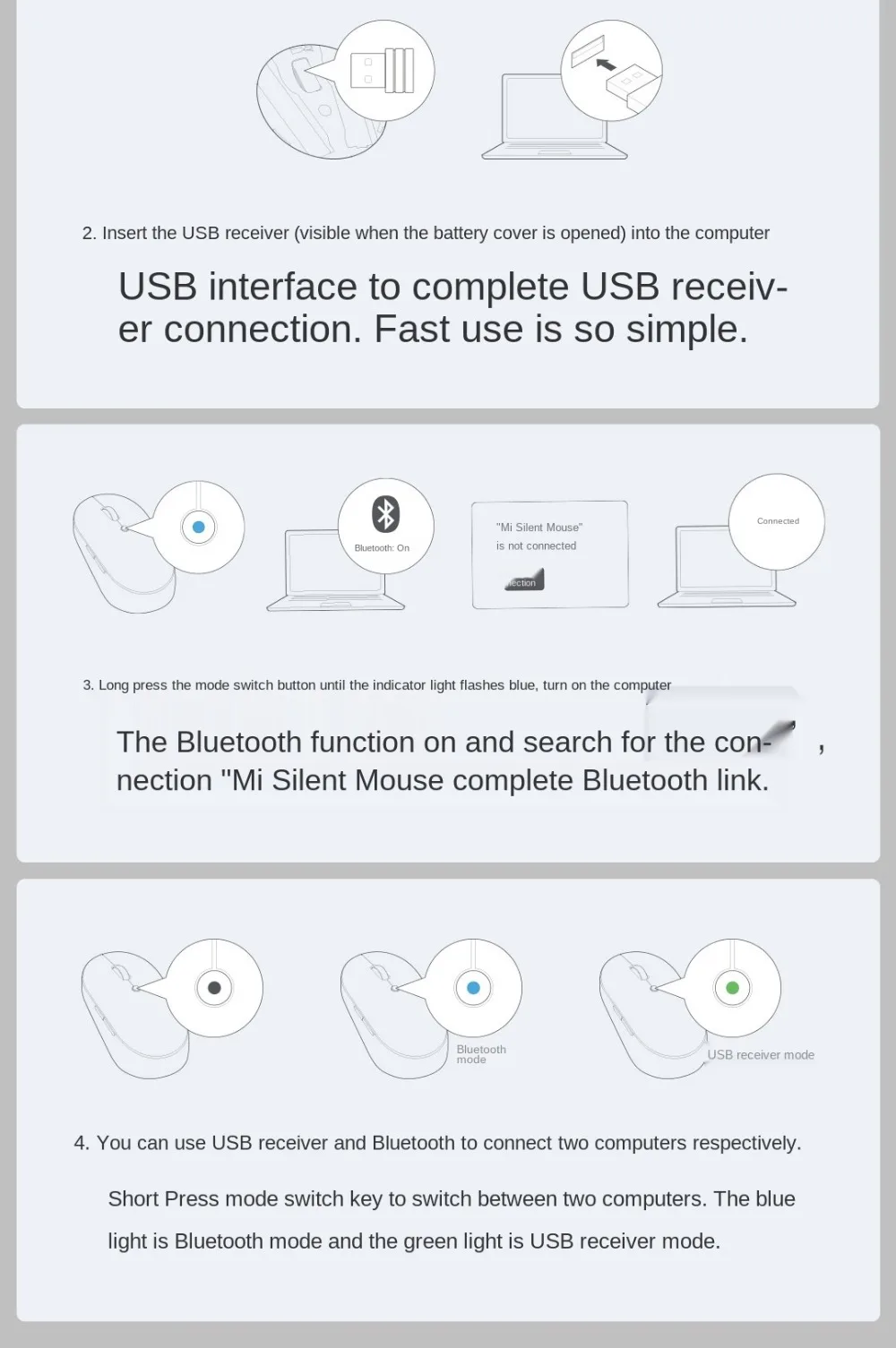 * Беспроводная мышь Mi Dual Mode Silent Edition* Двухрежимное подключение | Бесшумная работа | Боковые кнопки | Удобные в использовании* Звонки по Bluetooth и 2,4 ГГц двойной режим подключения* Более удобное Беспроводное управление.* Поддержка подключения двух компьютеров* Удобная кнопка мыши может обменять* Бесшумная Кнопка imporve эффективность работы* Принесите их в офисную библиотека конференц-зала* Даже работа в полночь не будет мешать членам семьи* Дизайн интимной стороны* Подходит для ярлыков Windows* Эргономичный дизайн, чувствовать себя более комфортно* Более Интимная форма