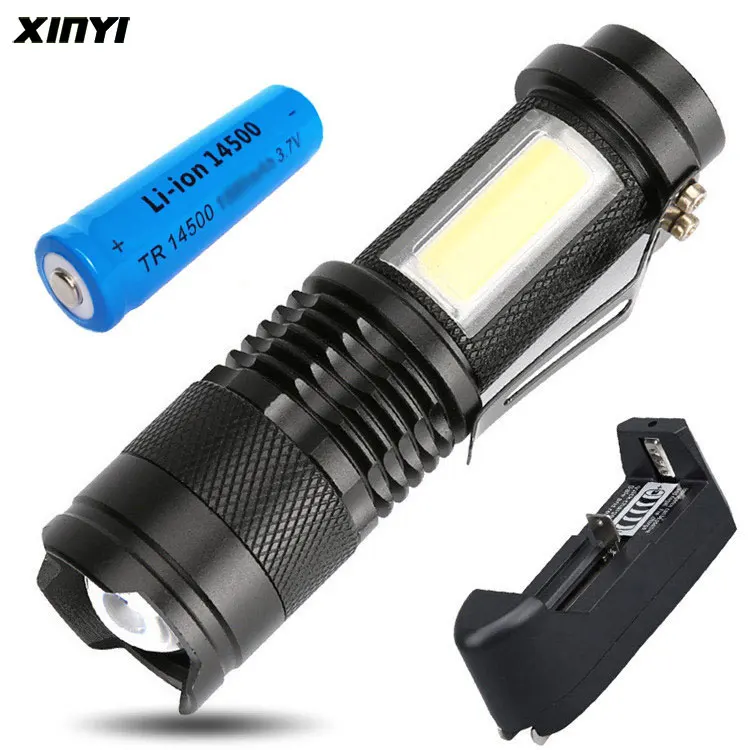 2000LM Портативный светодиодный фонарь Q5 COB мини черный Водонепроницаемый светодиодный фонарик с функцией масштабирования фонарь пальчиковые Применение AA 14500 Батарея освещение фонарь