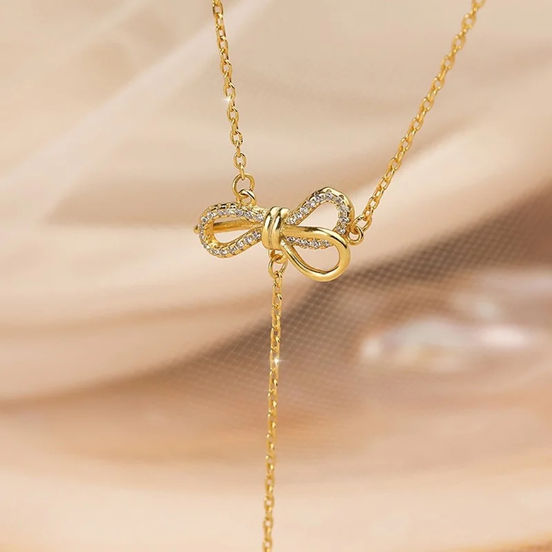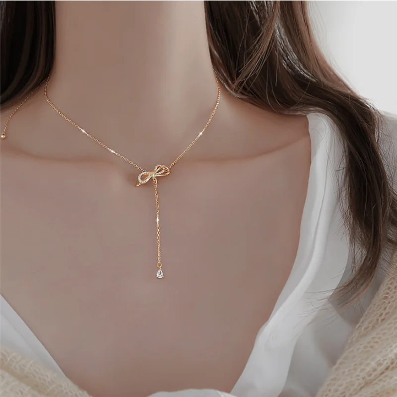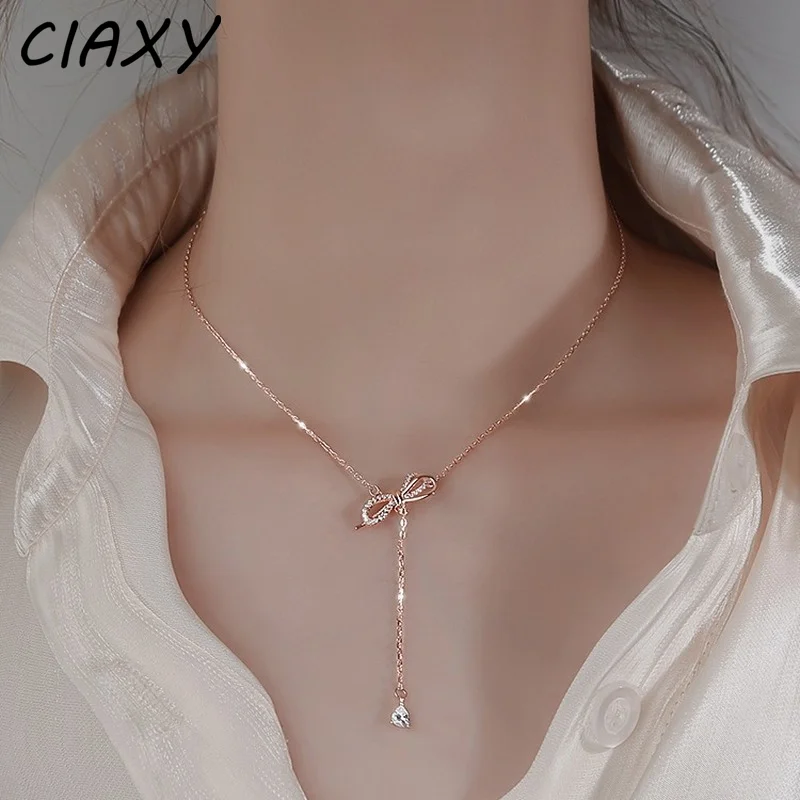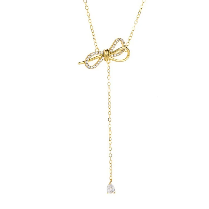 Ожерелье женское из серебра 925 пробы с инкрустированным Цирконом бантом и кисточкой