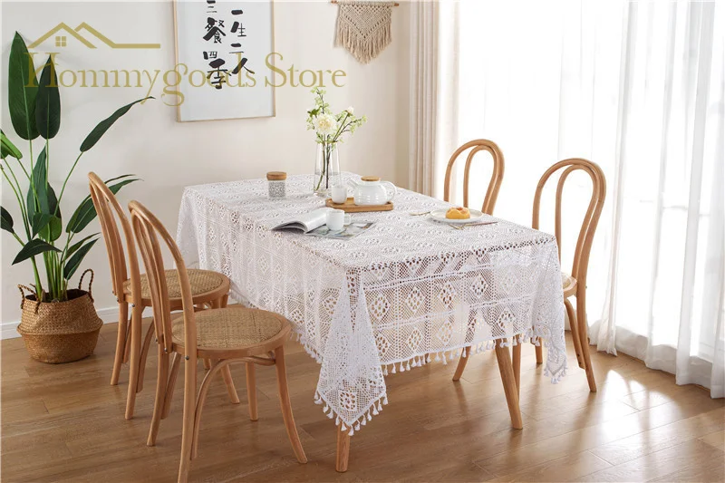 Кружевная скатерть для стола, Вязаная хлопковая скатерть, скатерть ...