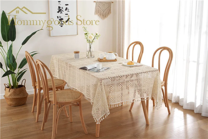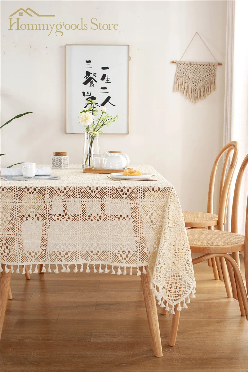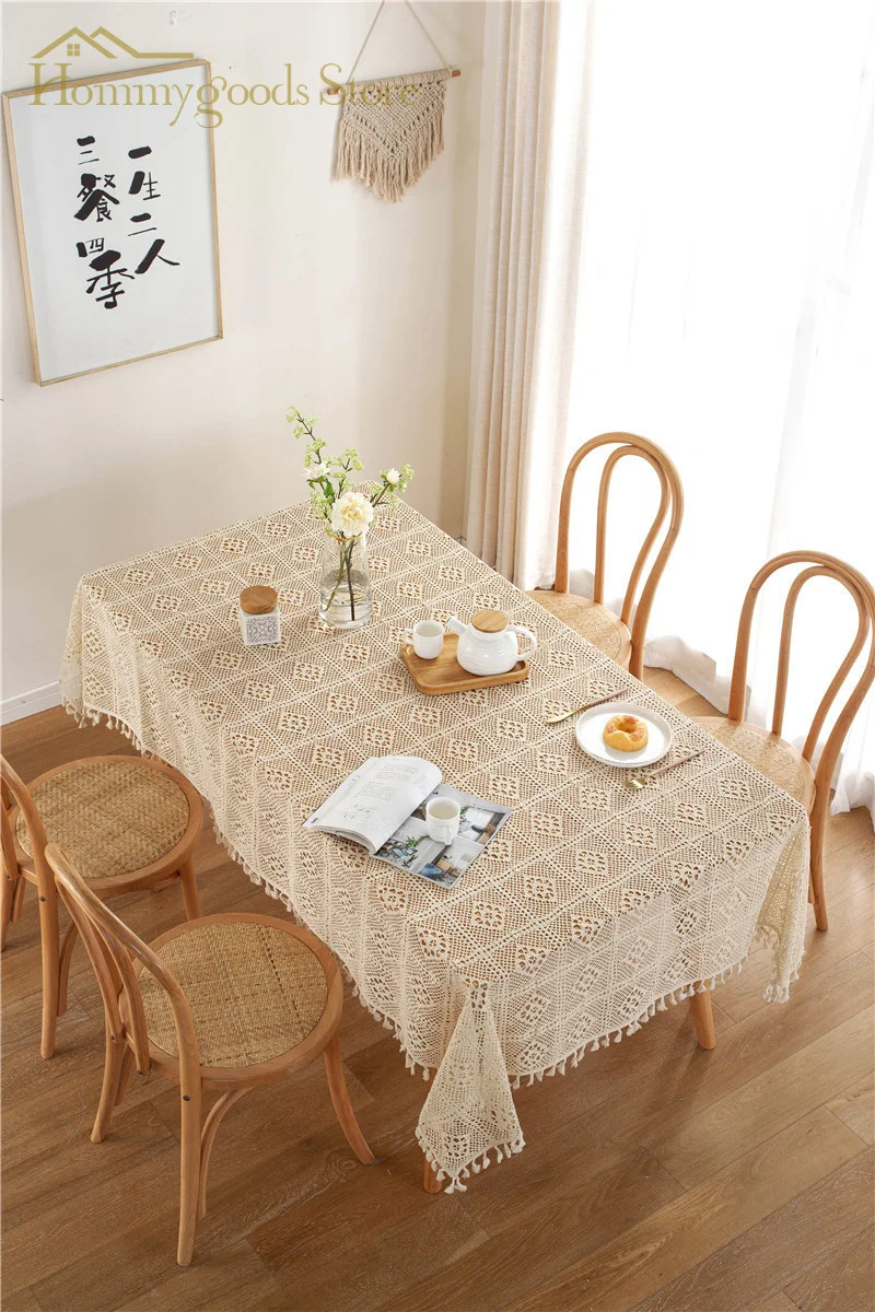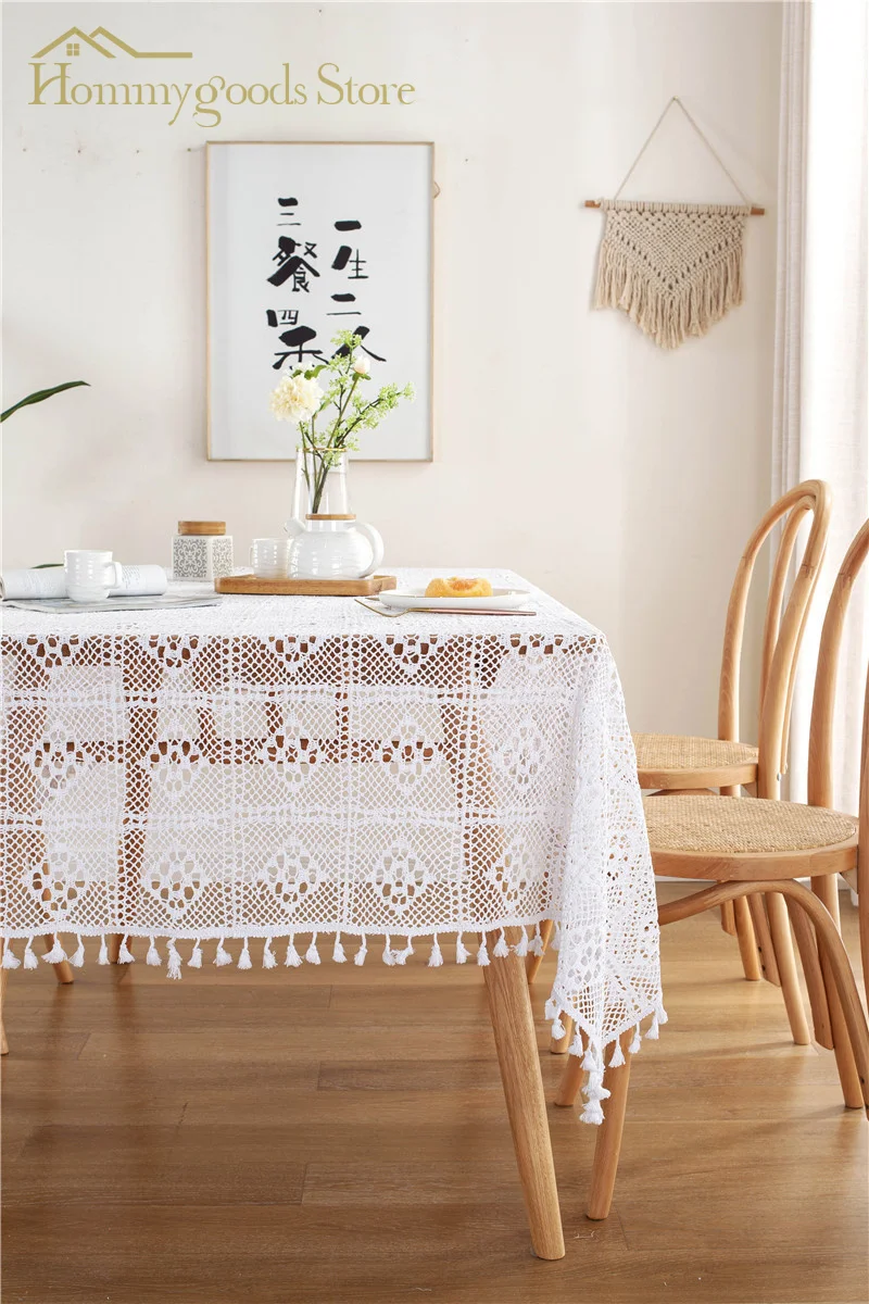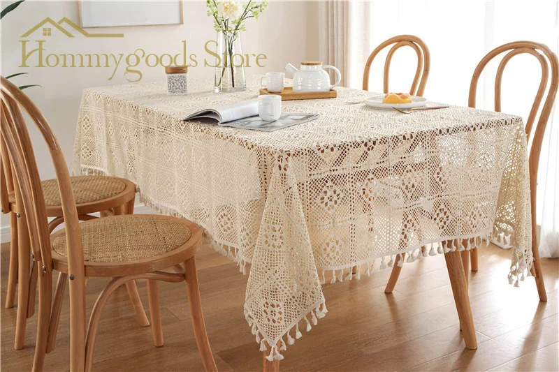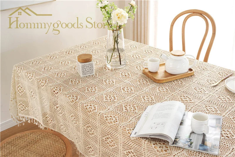 Пасторальная вязаная крючком скатерть из хлопка полый вязаный крючк...