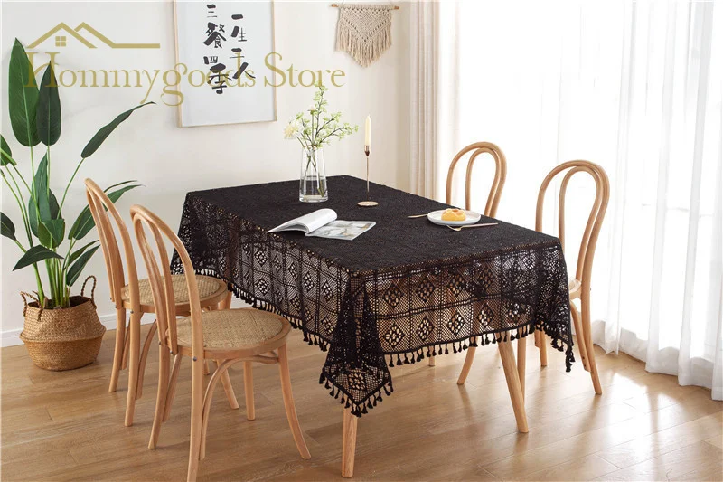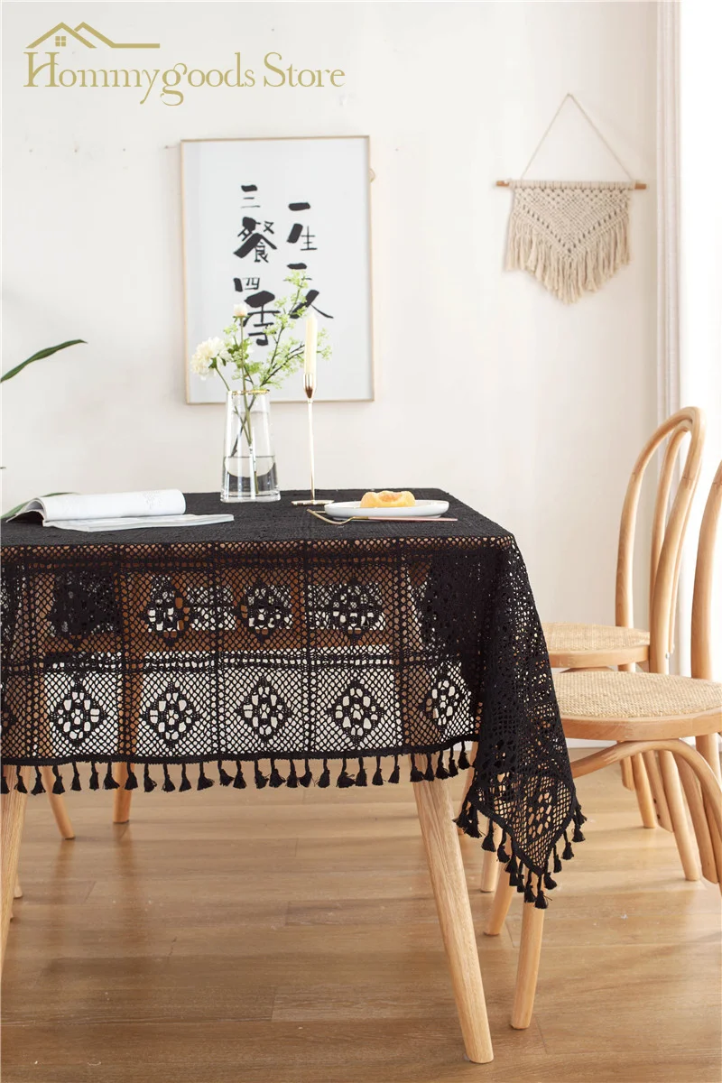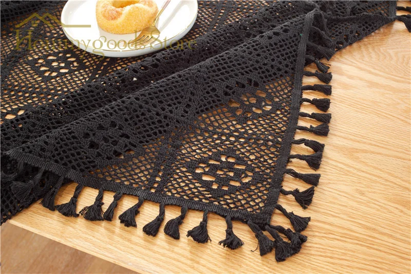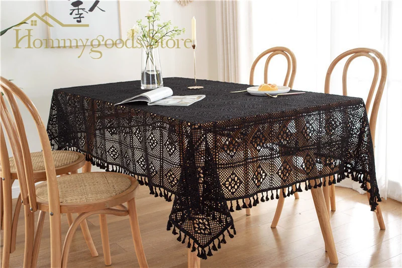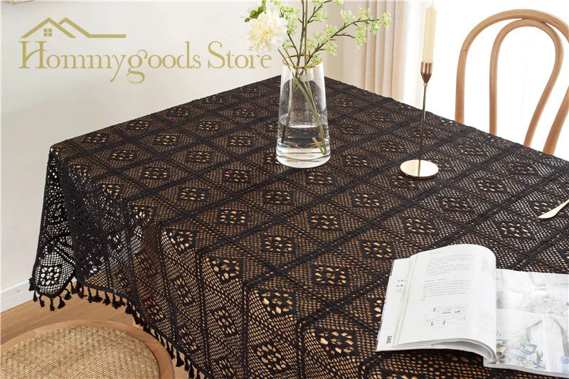 Прямоугольная скатерть кроше в американском сельском стиле, Черная ...
