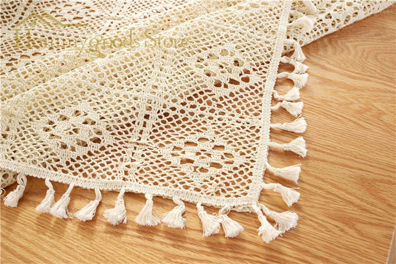Полый вязаный крючком скатерть, кружевная бежевая ткань, американск...